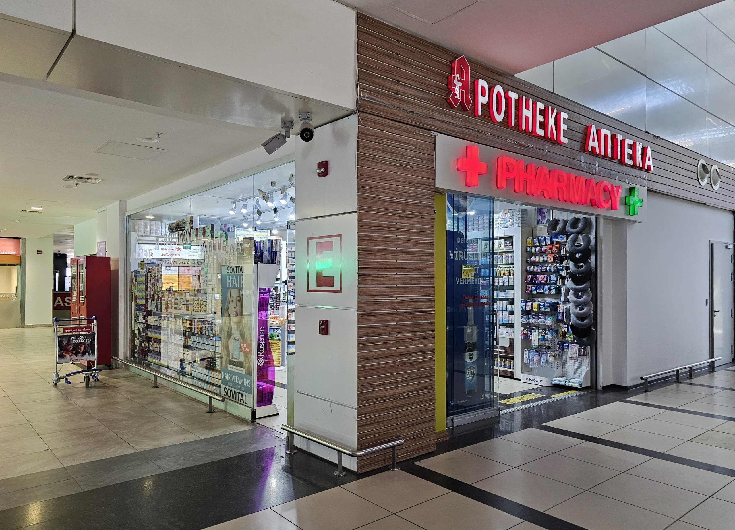 Apotek dapat ditemukan di area umum kedua terminal (buka 24/7 di Terminal 1, buka 9:00-18:00 di Terminal 2).