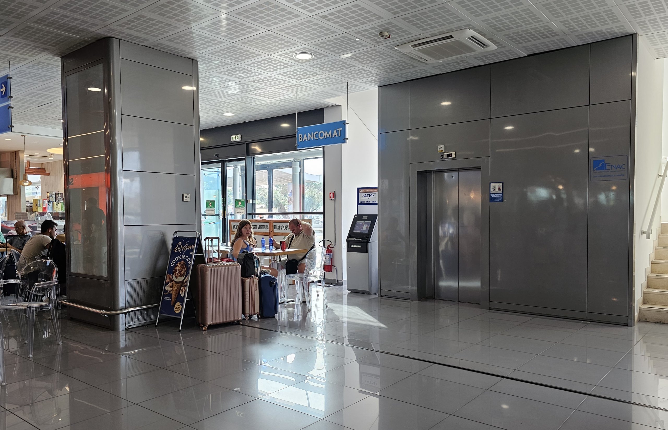 ATM di dekat sabuk bagasi dioperasikan oleh Euronet dengan biaya penarikan sekitar 5 euro dan nilai tukar yang tidak menguntungkan. Kami sarankan untuk pergi ke luar dan dekat dengan minuman di lobi antara kedatangan dan keberangkatan untuk menarik uang dari ATM Banca Popolare Pugliese tanpa biaya.