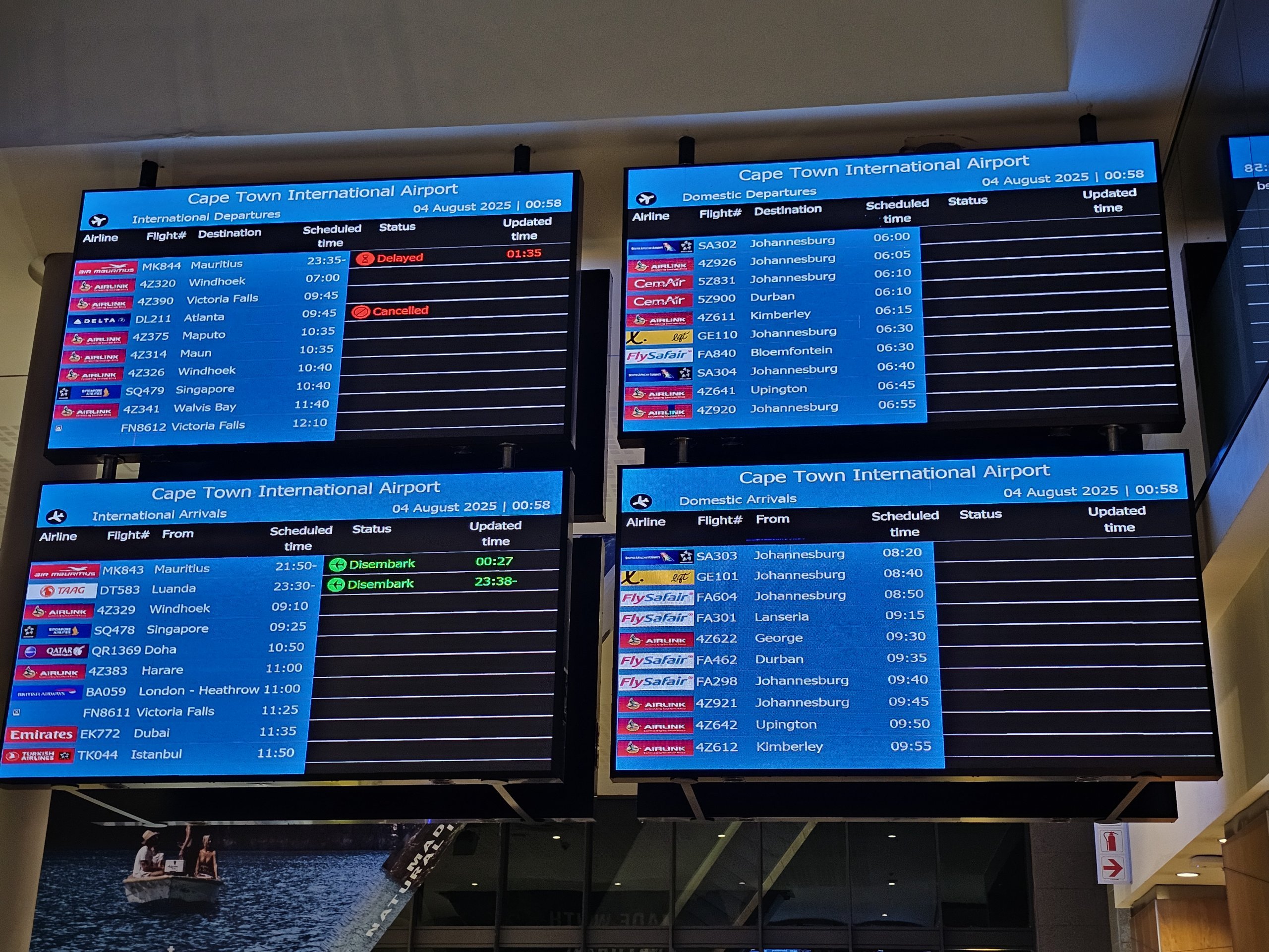Kedatangan dan keberangkatan di Bandara Cape Town