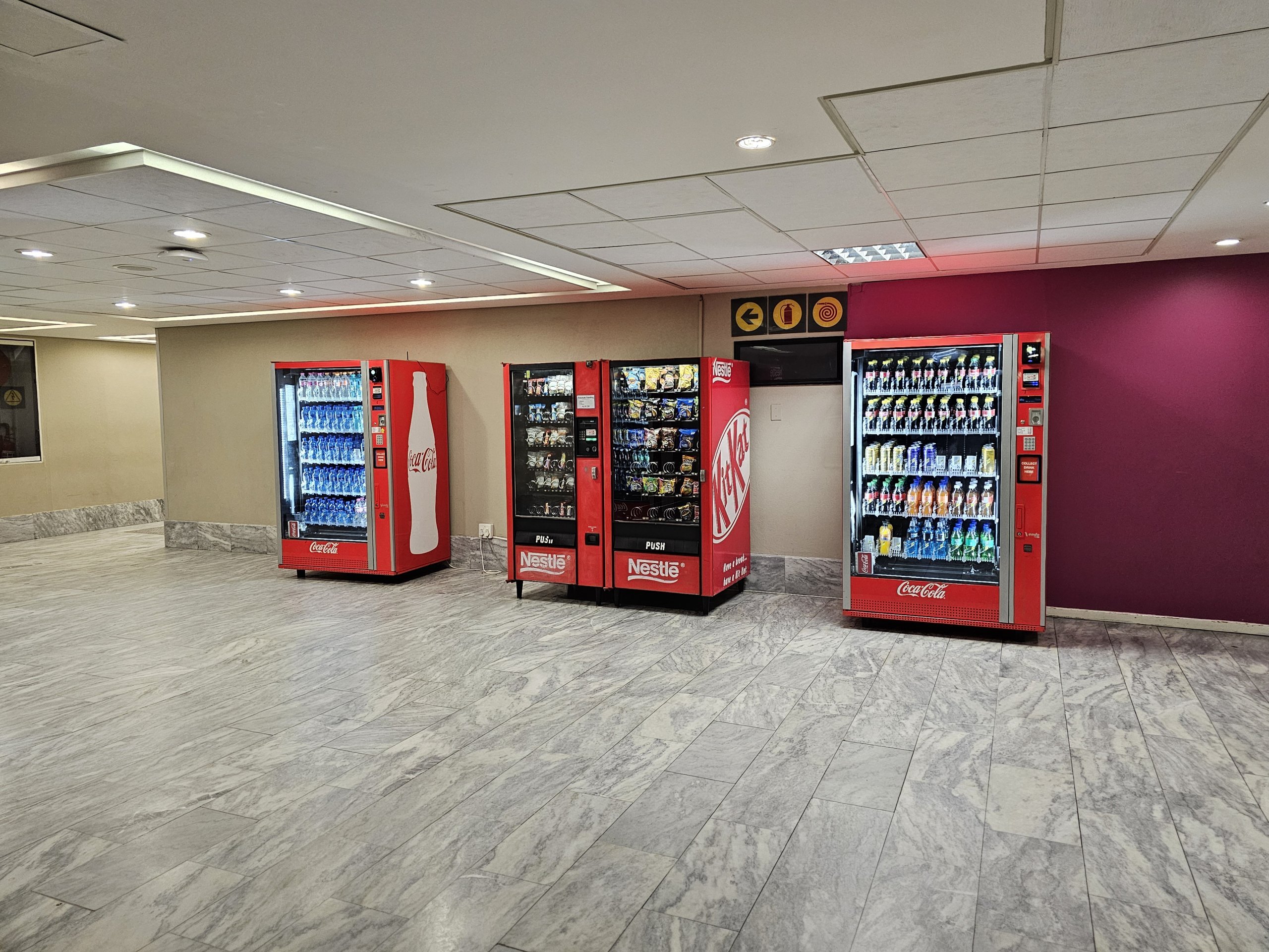 Di area umum aula kedatangan, Anda akan menemukan banyak mesin penjual otomatis yang menjual minuman soda dan air, yang dapat berguna terutama pada malam hari ketika semua toko tutup.