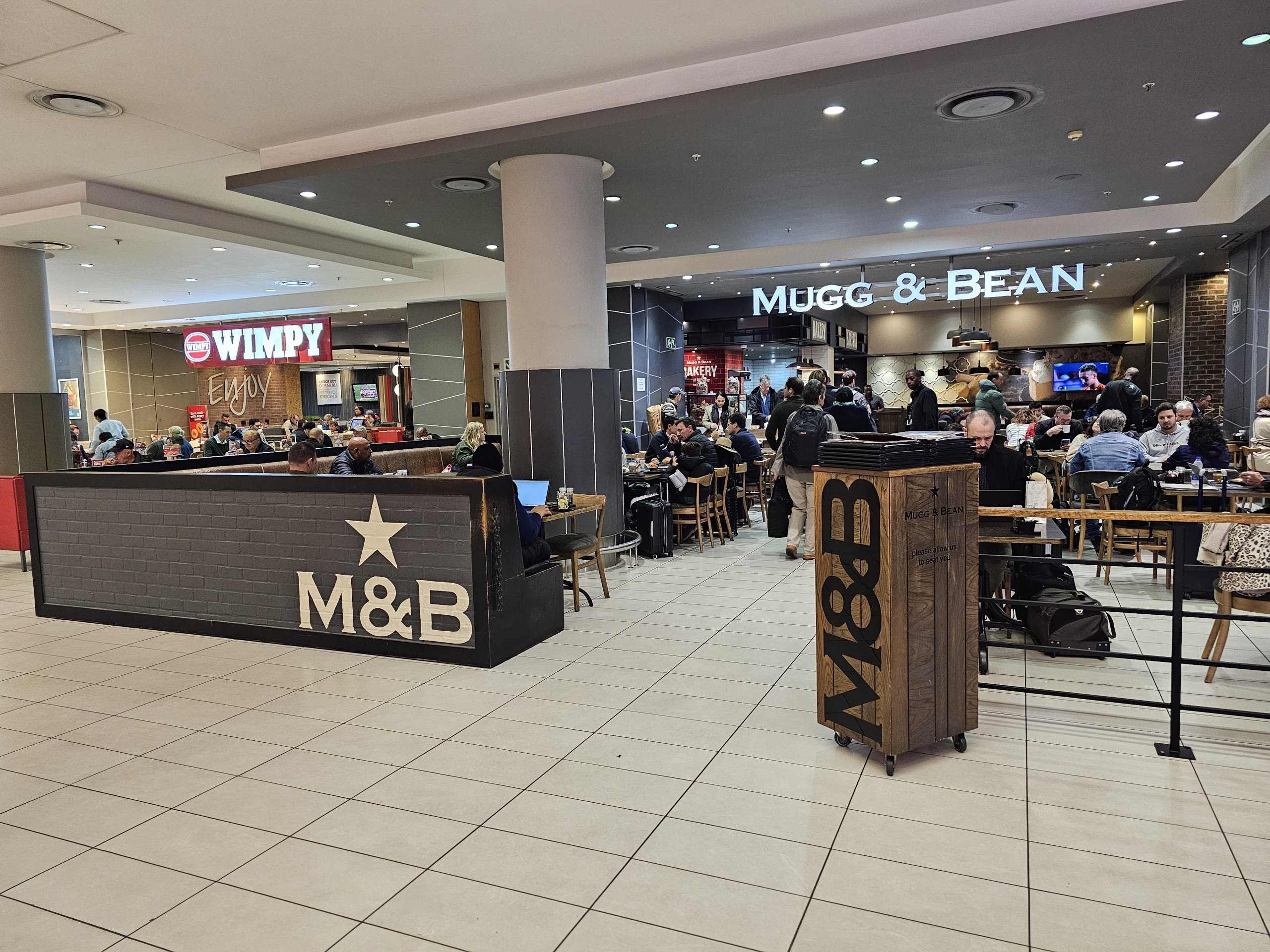 - Mugg & Bean: kafe - area publik dan zona transit, keberangkatan, 6:00-20:00