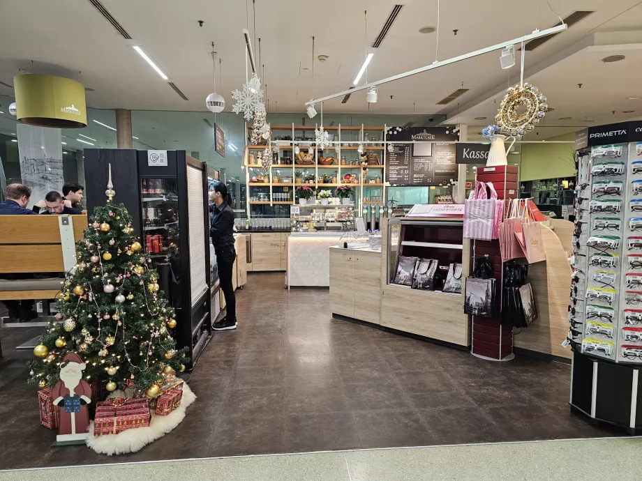 Di area umum terminal, Anda dapat membeli bahan makanan di supermarket SPAR yang buka dari Senin hingga Sabtu mulai pukul 07.30 hingga 19.00, dan pukul 06.00 hingga 20.00 pada hari Minggu dan hari libur nasional.