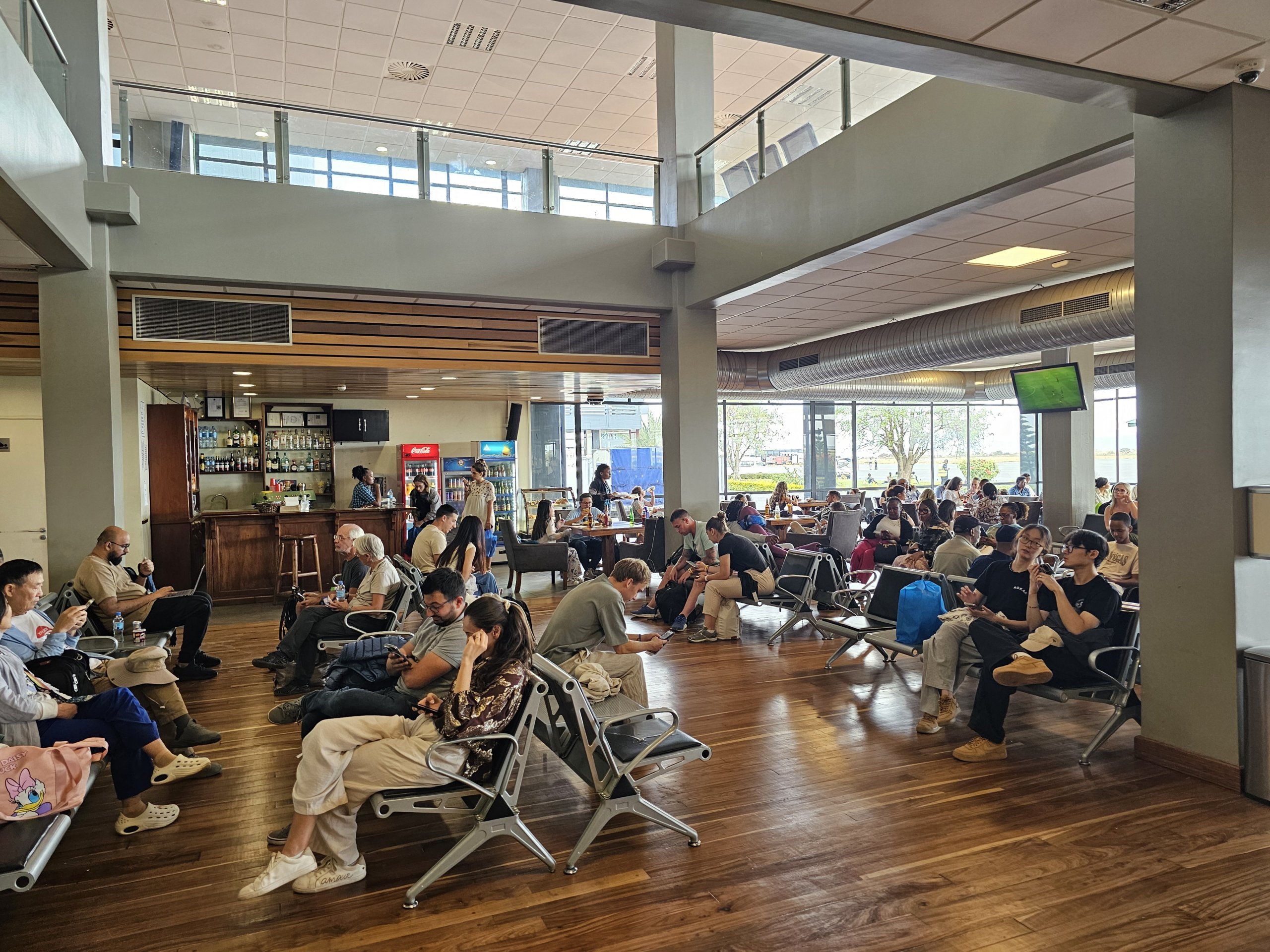 Kelemahannya adalah bandara ini sangat ramai jika ada pesawat yang lebih besar yang sedang melakukan check-in untuk penerbangan internasional, dan ada kekurangan tempat duduk. Namun, prosedur sebelum keberangkatan relatif cepat dan Anda hanya perlu tiba 2 jam sebelum keberangkatan.