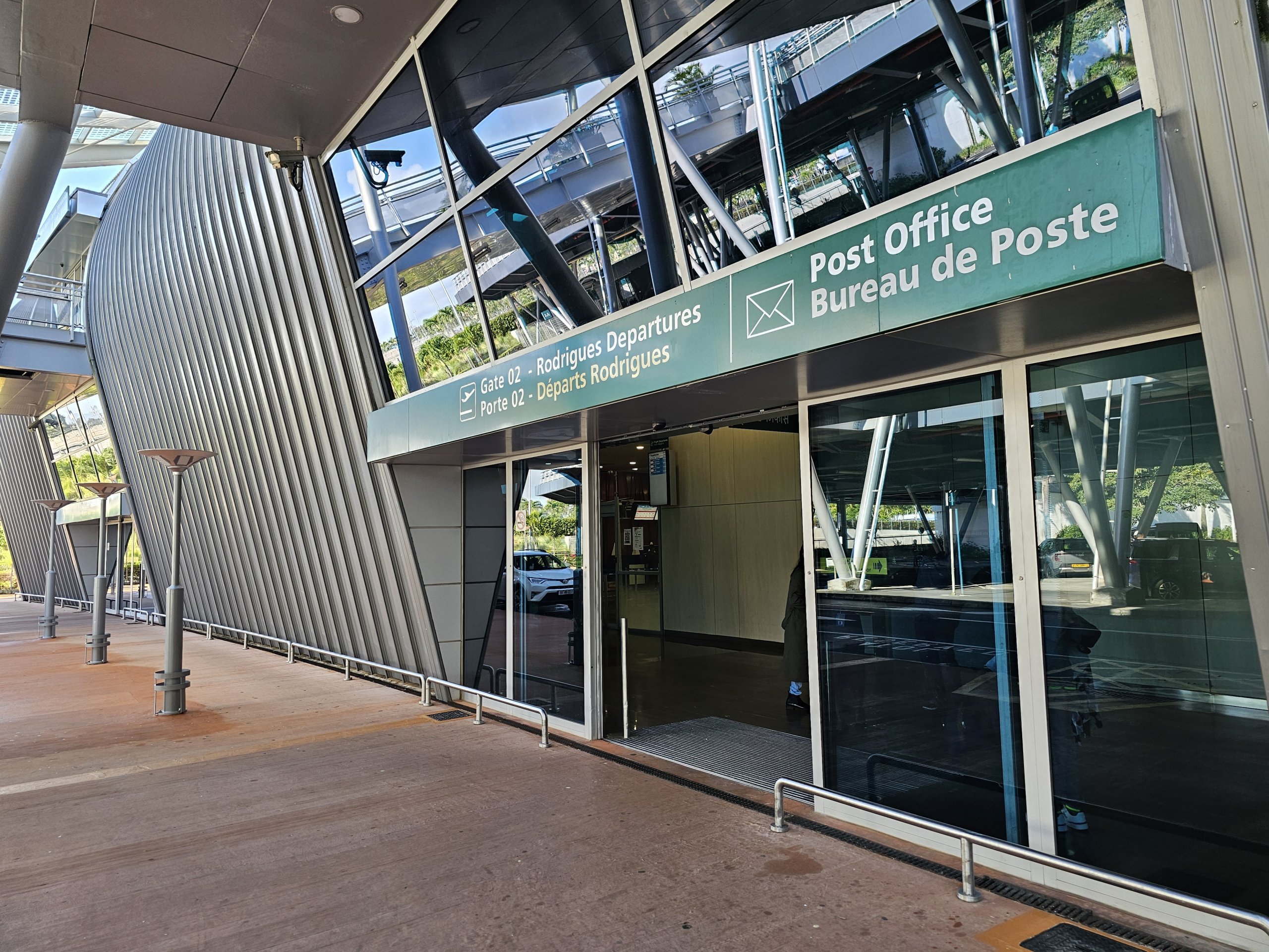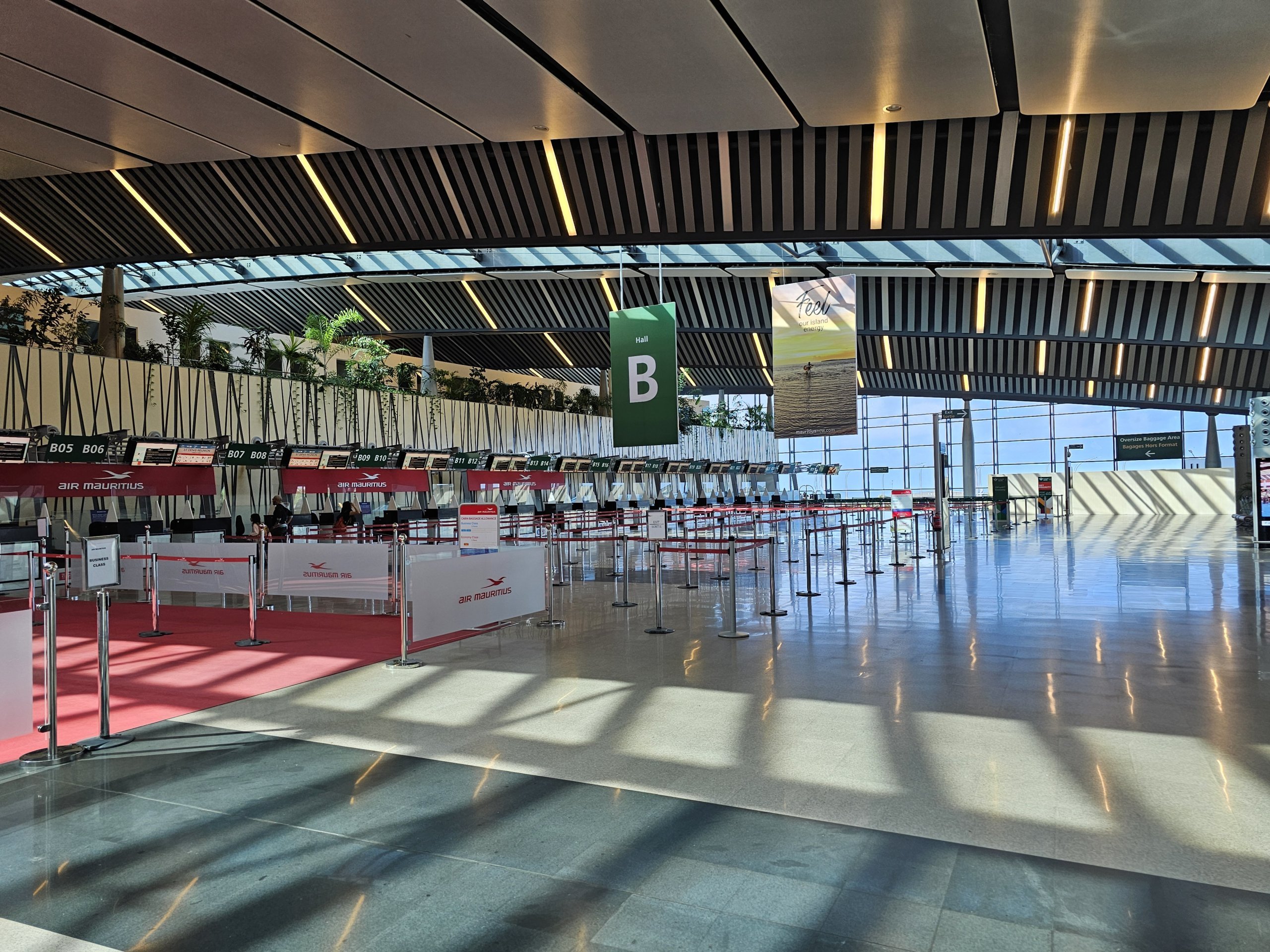 Penerbangan ke Pulau Rodrigues check-in di lantai dasar di sebelah kiri aula kedatangan jika dilihat dari luar.