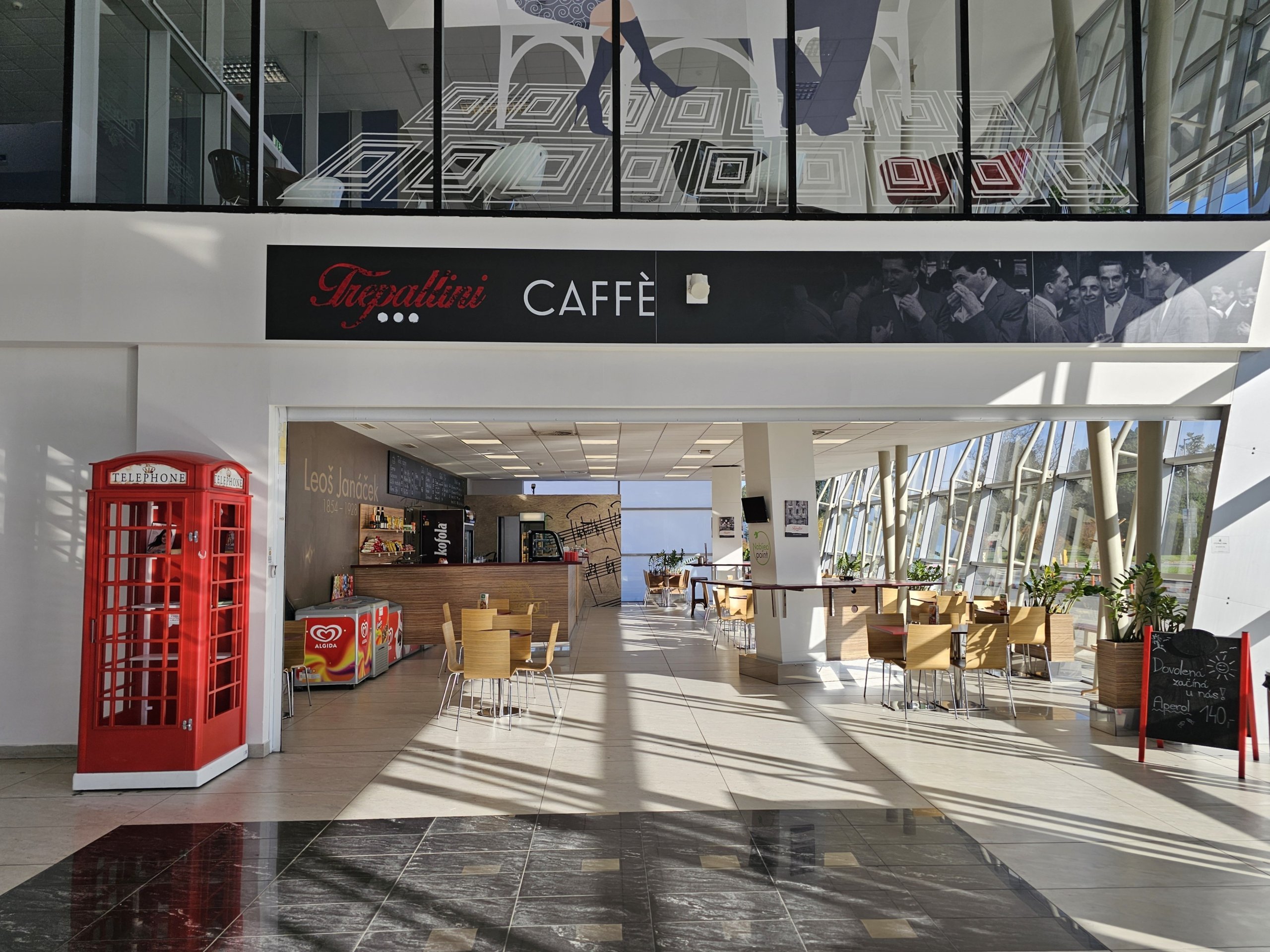 Di area umum bandara, Anda akan menemukan kafe Fragollini yang menawarkan baguette, roti lapis, atau minuman.