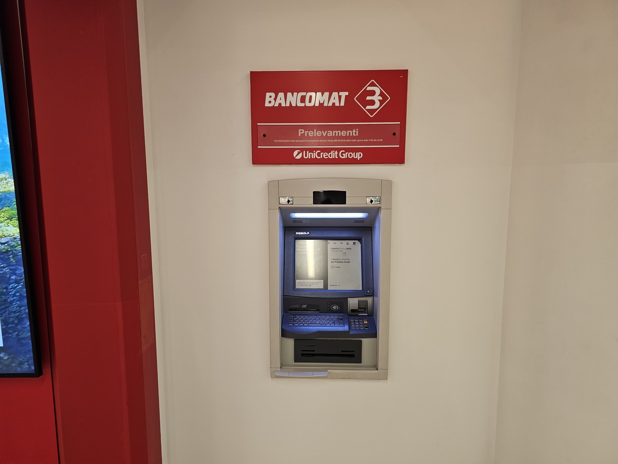 Terdapat ATM UniCredit di ruang tunggu keberangkatan di antara meja check-in dan keamanan di dekat kantor koran RELAY yang mengeluarkan uang tanpa biaya.