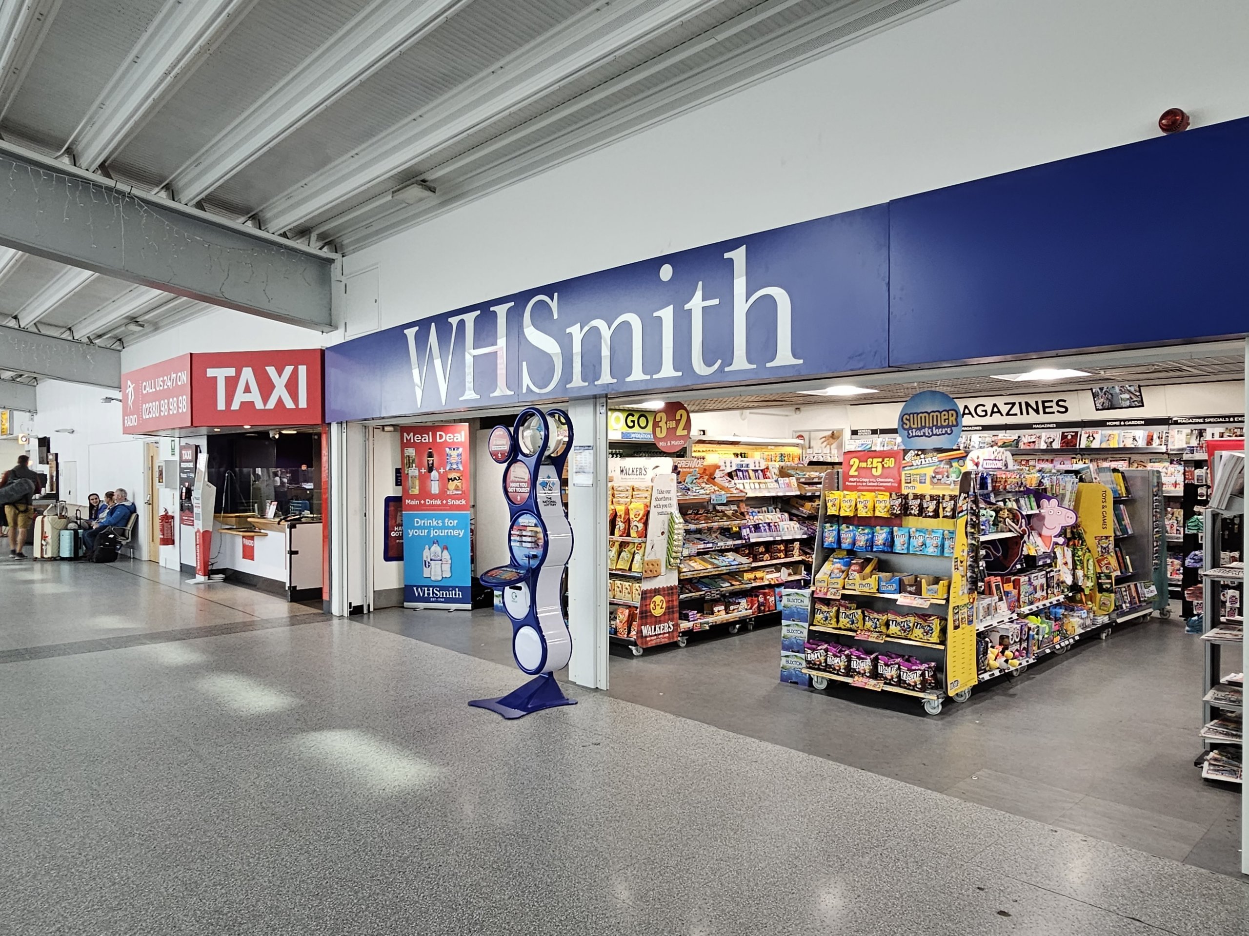 Di aula kedatangan dan setelah pemeriksaan keamanan, Anda dapat menggunakan mini market WHSmith yang menjual makanan ringan dan obat-obatan. Jam bukanya adalah sebagai berikut:
