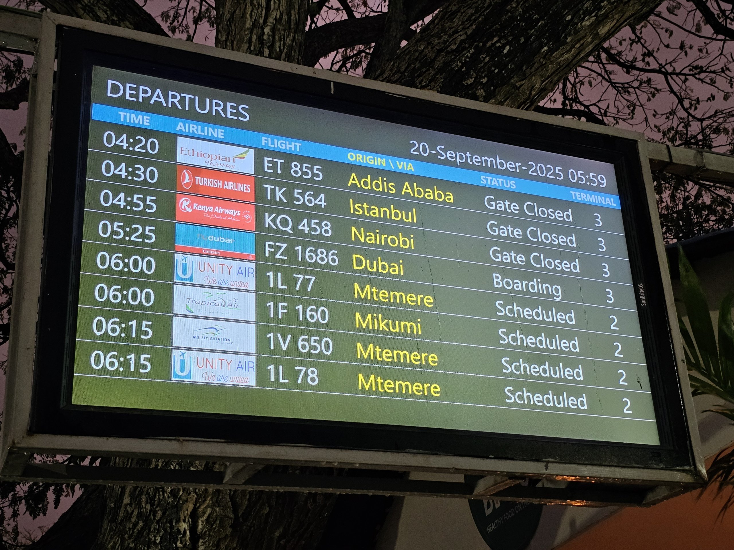 Kedatangan dan keberangkatan di Bandara Zanzibar
