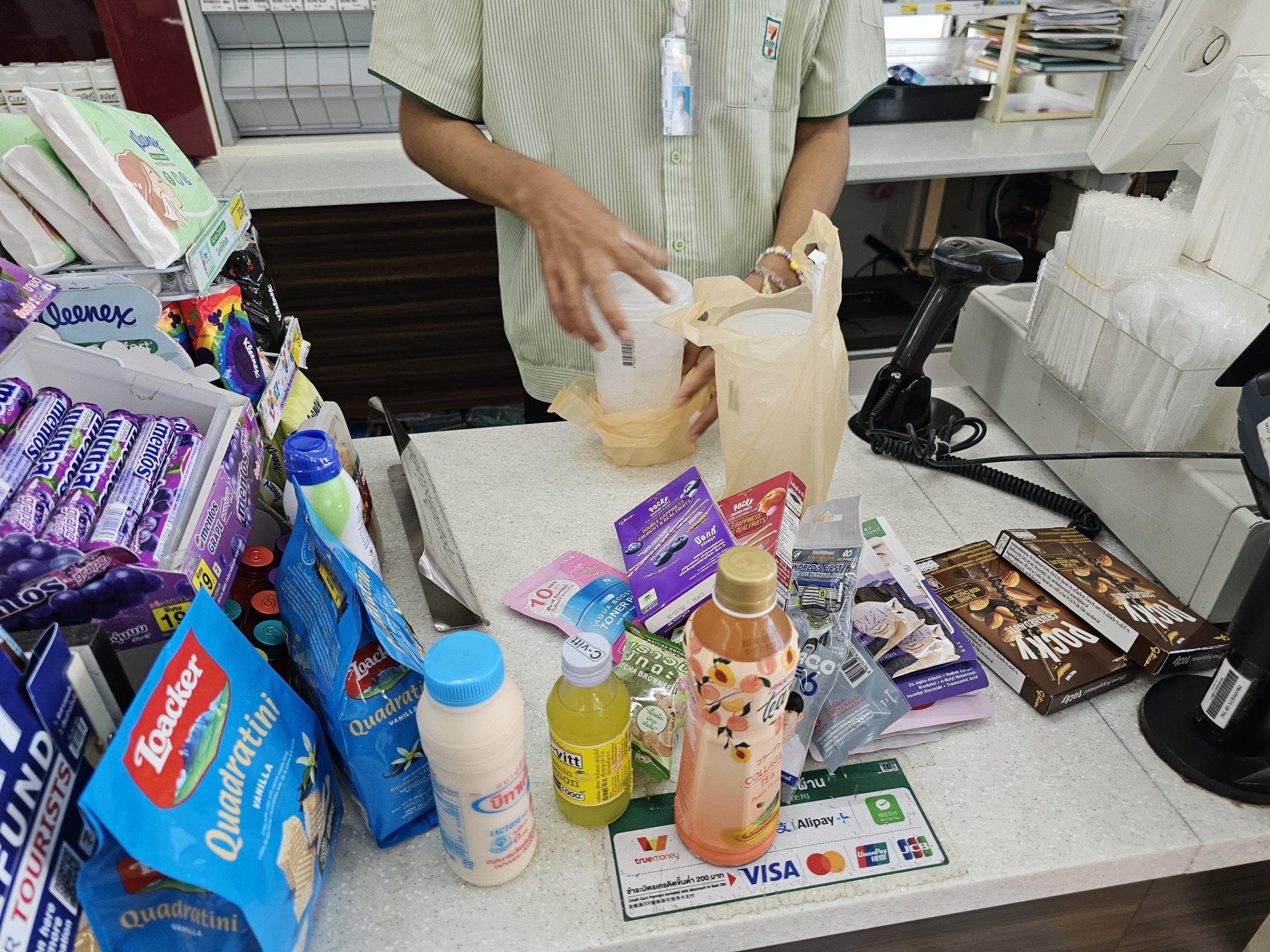 Pertama kali kami pergi ke 7-Eleven di Thailand hanya untuk membeli air. Keesokan harinya untuk minum kopi.