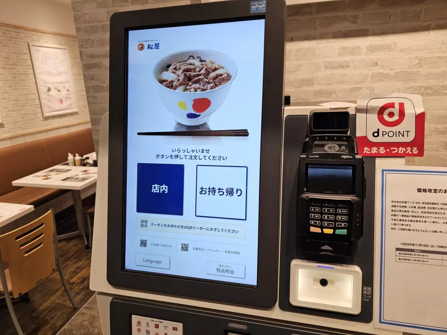 Di restoran-restoran ini, Anda memesan melalui mesin swalayan, di mana Anda membayar (biasanya Anda bisa membayar dengan kartu) dan menunggu dengan slip dengan nomor pesanan Anda.