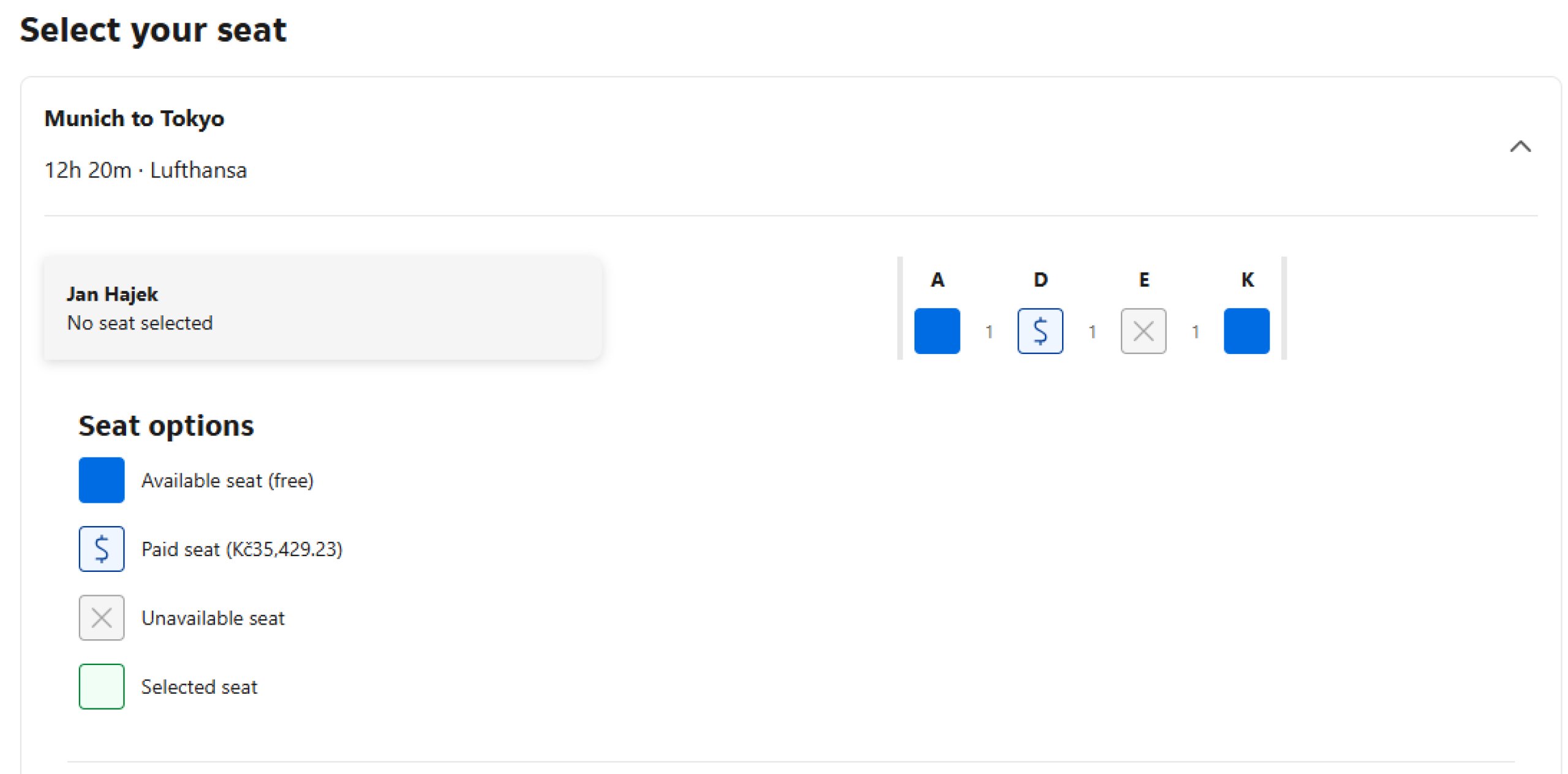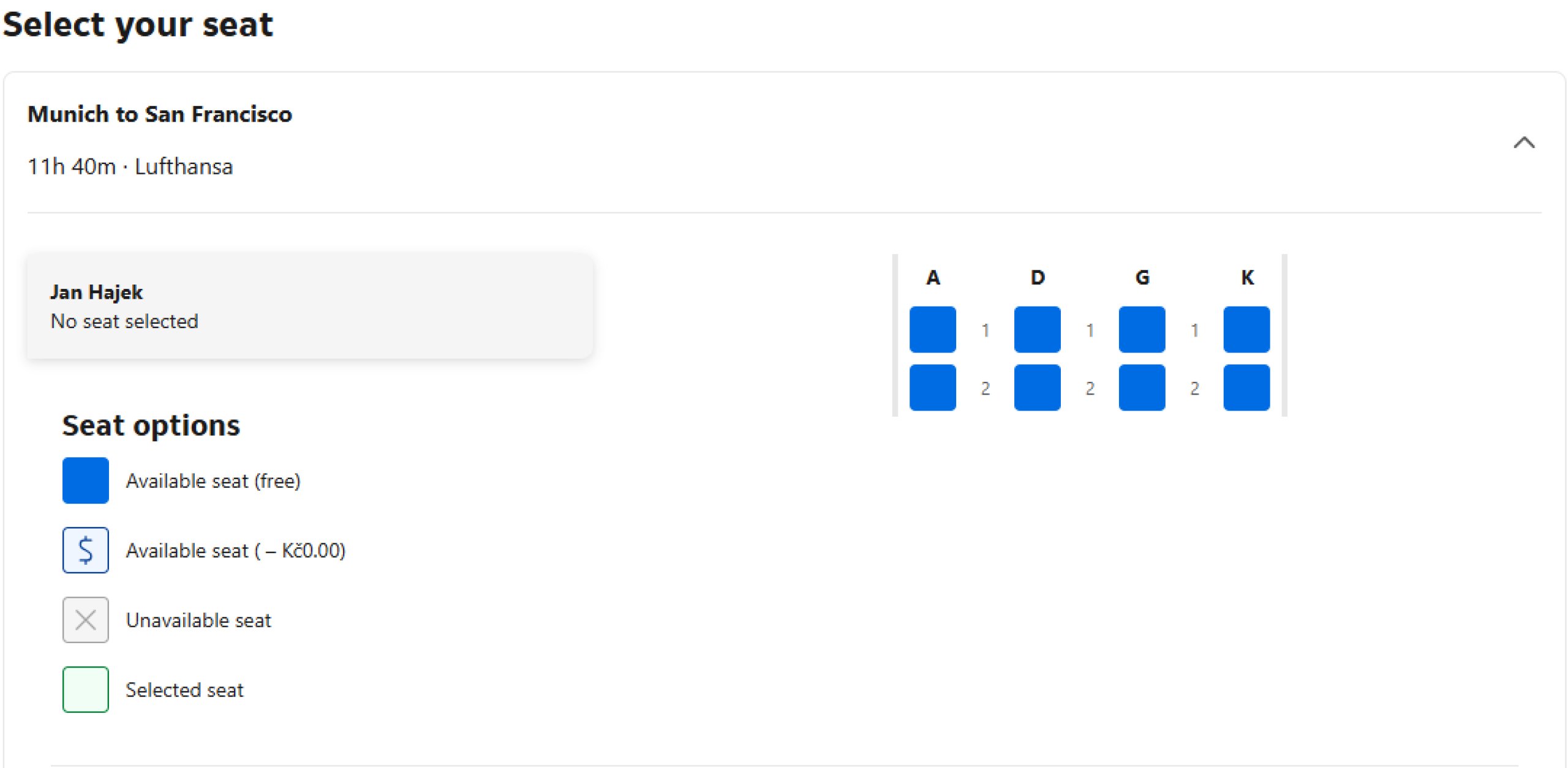 Berikut adalah beberapa contoh tampilan seatmap saat memesan di booking.com.