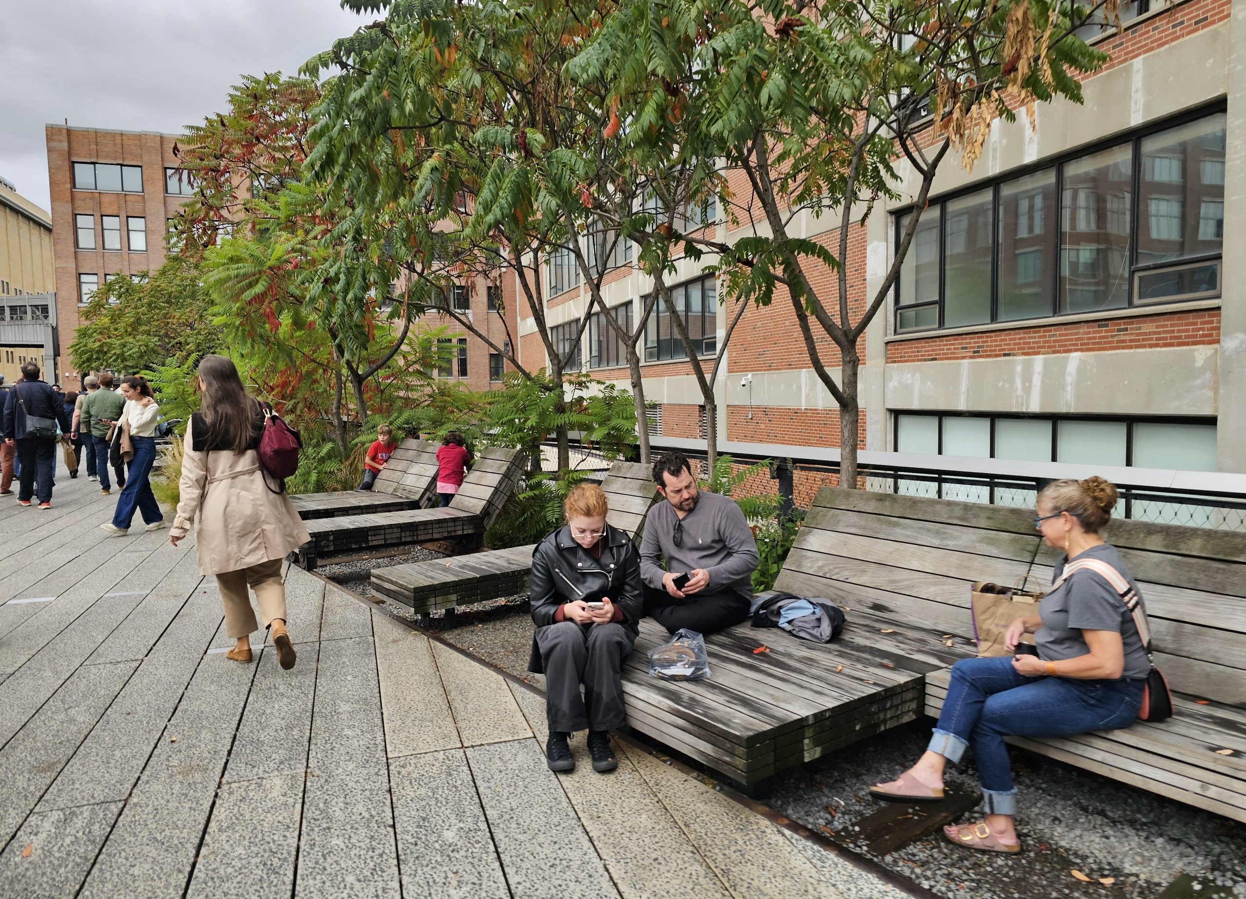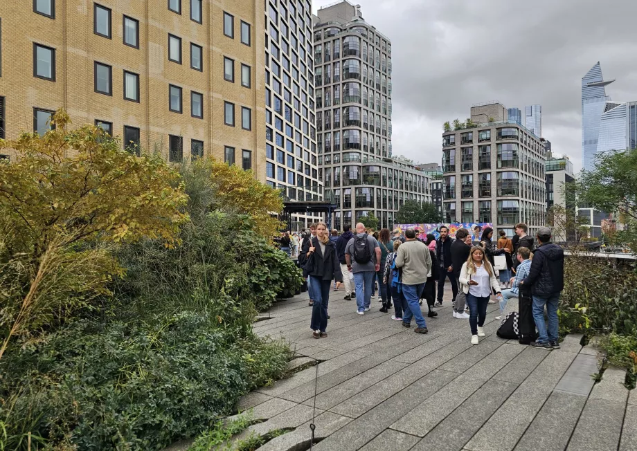 - High Line ramai sepanjang hari, dengan jumlah turis paling sedikit di sini pada pagi hari (sebelum jam 8 pagi) dan setelah gelap