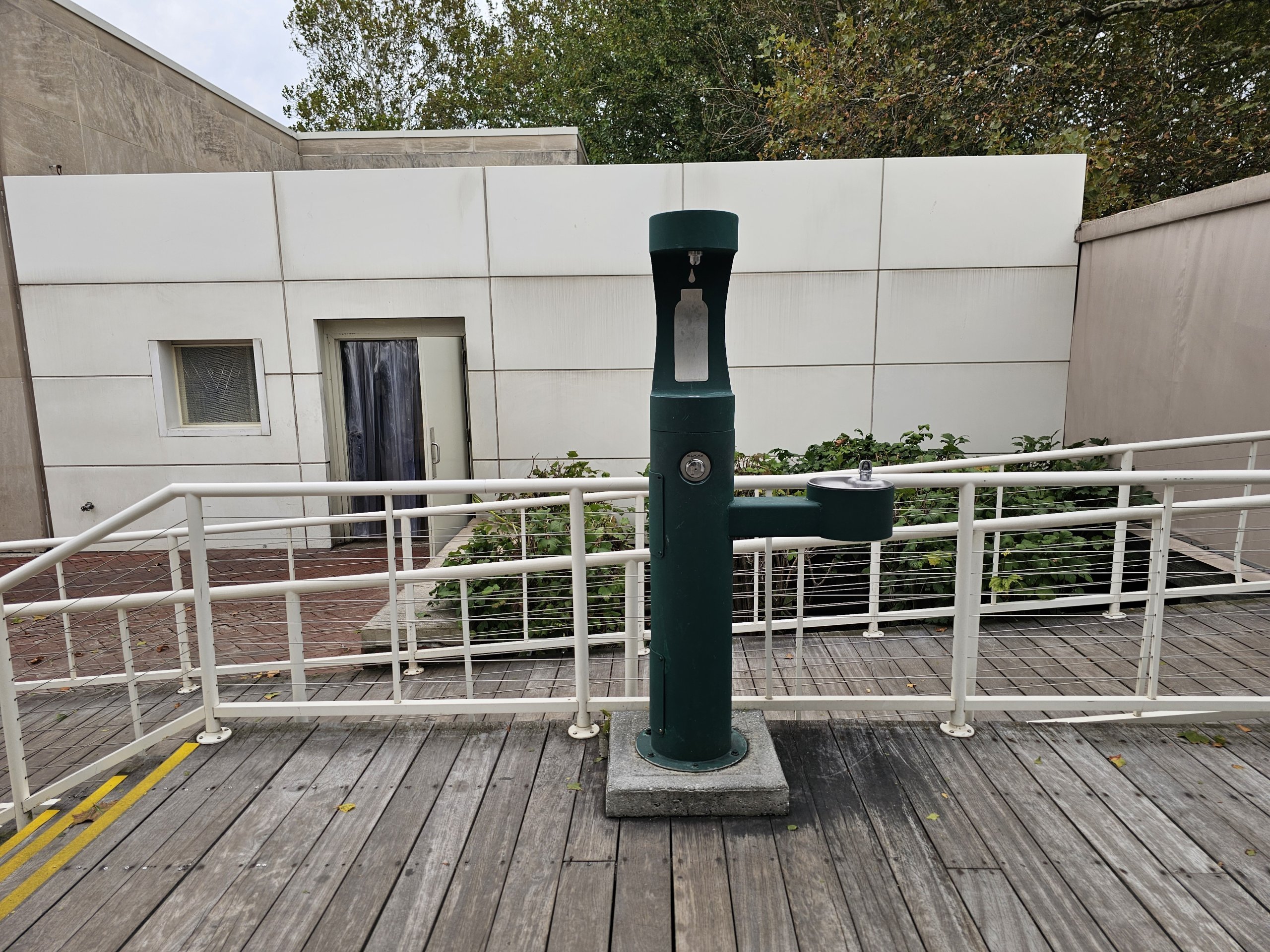 Di Liberty Island, Anda akan menemukan air mancur minum gratis di dekat kafe, di mana Anda dapat mengisi botol Anda sendiri.