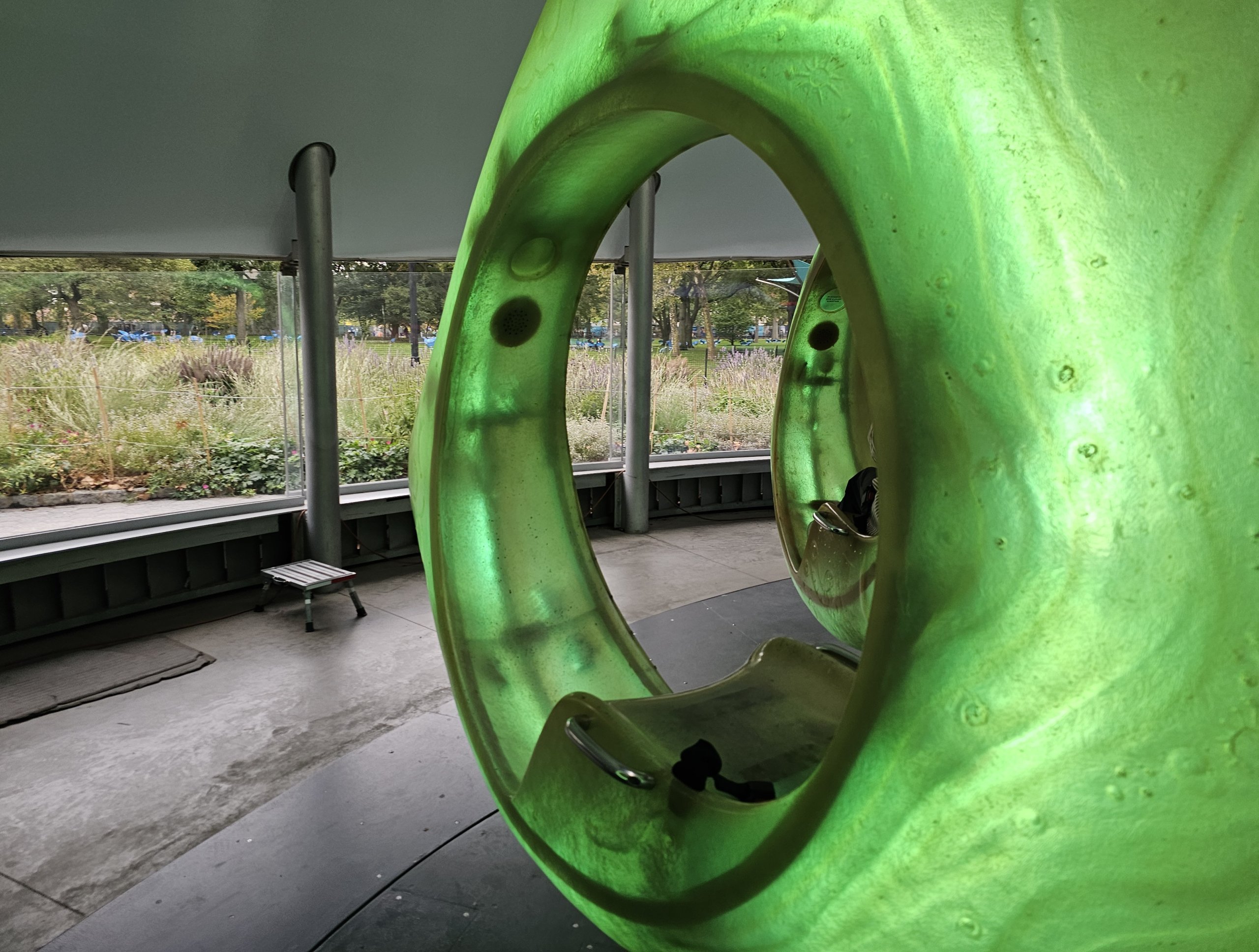 Korsel Desain SeaGlass terletak di Battery Park di Manhattan selatan dekat dermaga kapal Patung Liberty.
