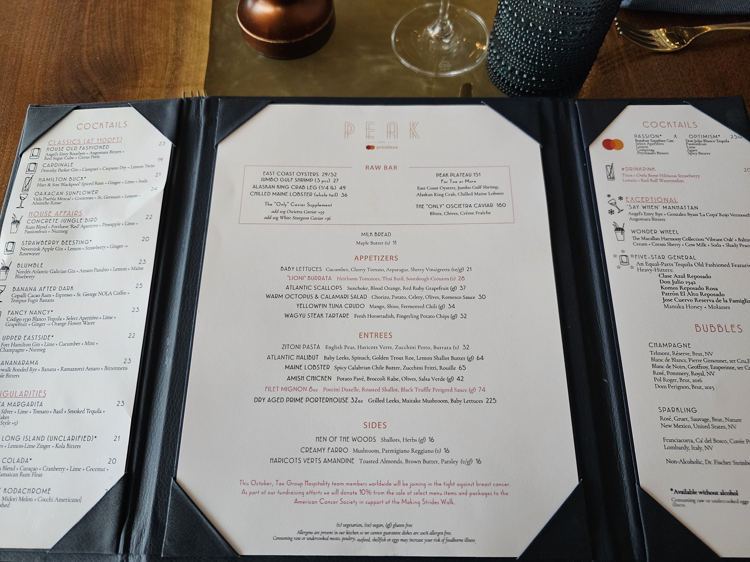 Anda dapat melihat menu lengkapnya di situs web restoran ini: peaknyc.com/restaurant-bars.
