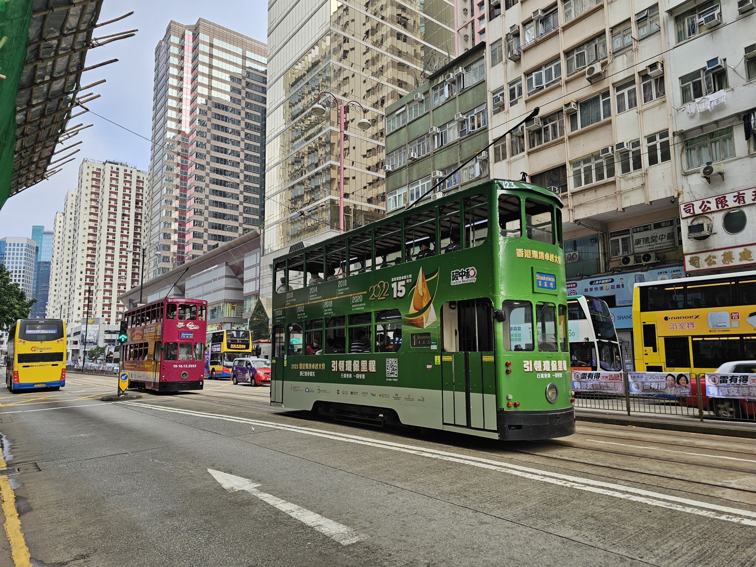 Trem tingkat hanya beroperasi di pusat kota Hong Kong Island, dan Anda dapat menaikinya hampir di sepanjang pesisir utara pulau ini di sepanjang Pelabuhan Victoria.