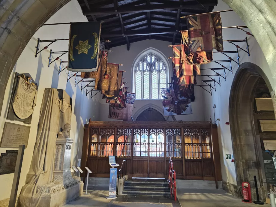 Interiornya sangat layak untuk dikunjungi. Ruang Gotik didominasi oleh jendela kaca patri dan ukiran altar yang indah.