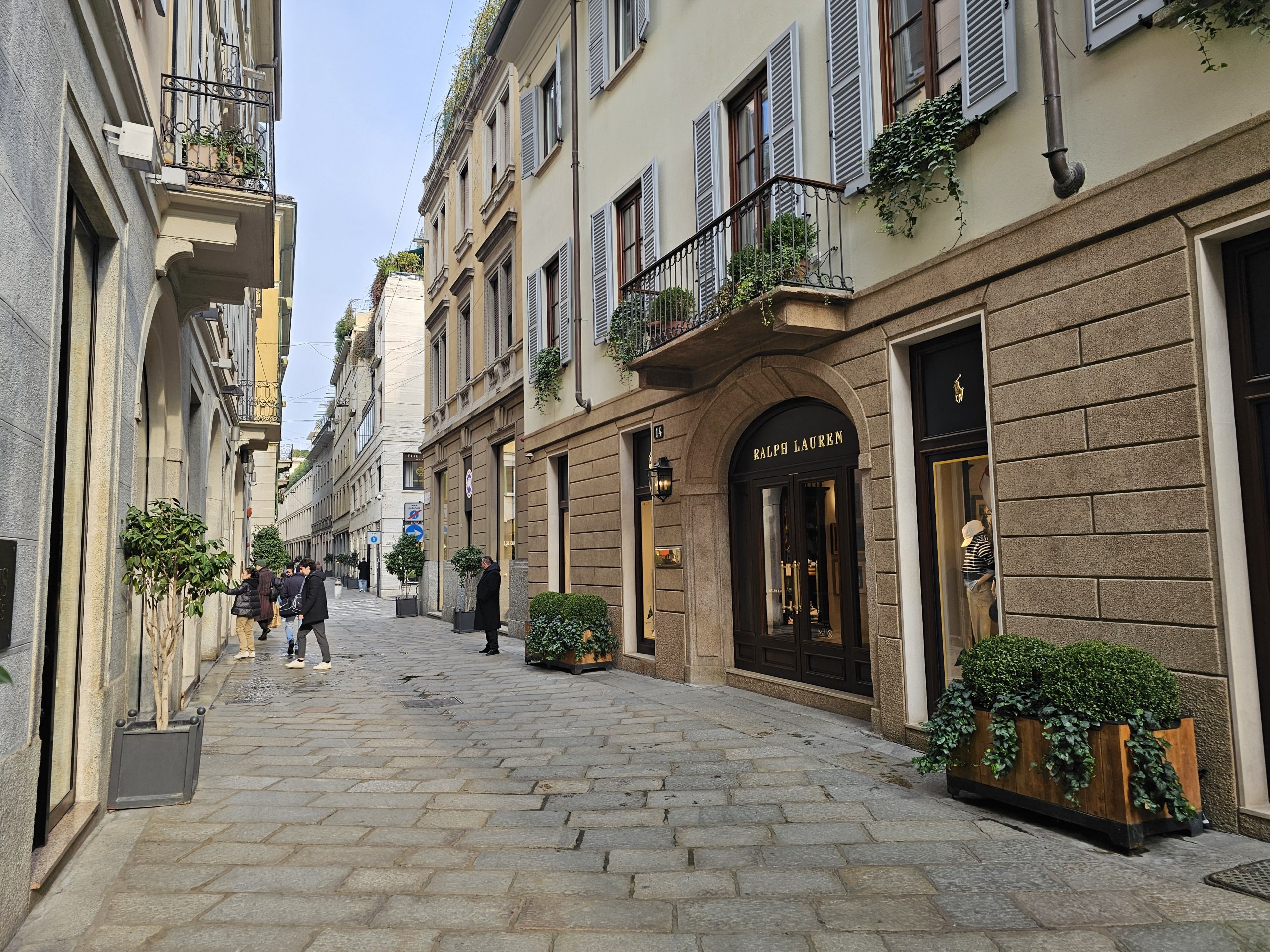Namun, banyak toko yang kurang terkenal namun berkualitas tinggi dan kelas atas dapat ditemukan di hampir semua sisi jalan seperti Via Borgospesso, Via della Spiga, Via Santo Spirito atau Via Alessandro Manzoni yang ramai, tempat Armani dan beberapa merek lainnya berkantor di sebuah bangunan besar.