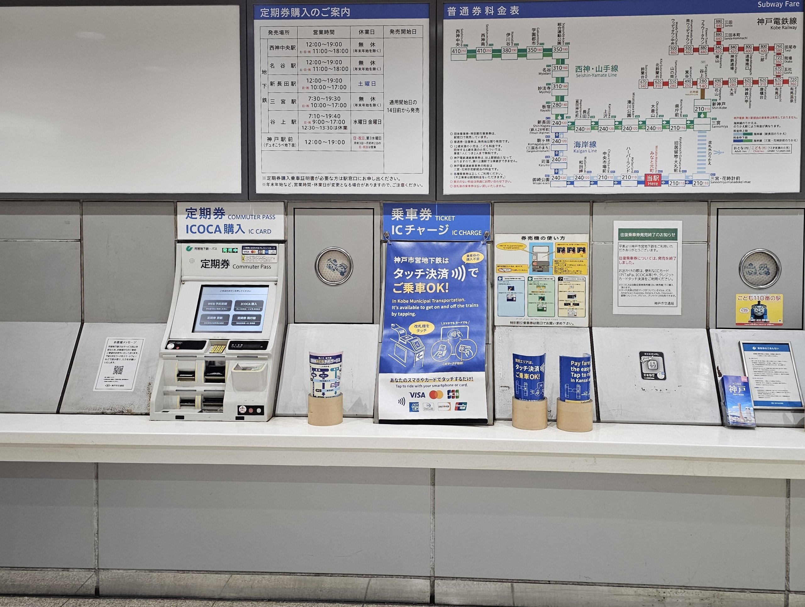 Kartu ICOCA dijual di Kobe atau Osaka, tetapi Anda bisa menggunakan kartu nasional Jepang mana pun di sini, seperti Suica dari Tokyo.