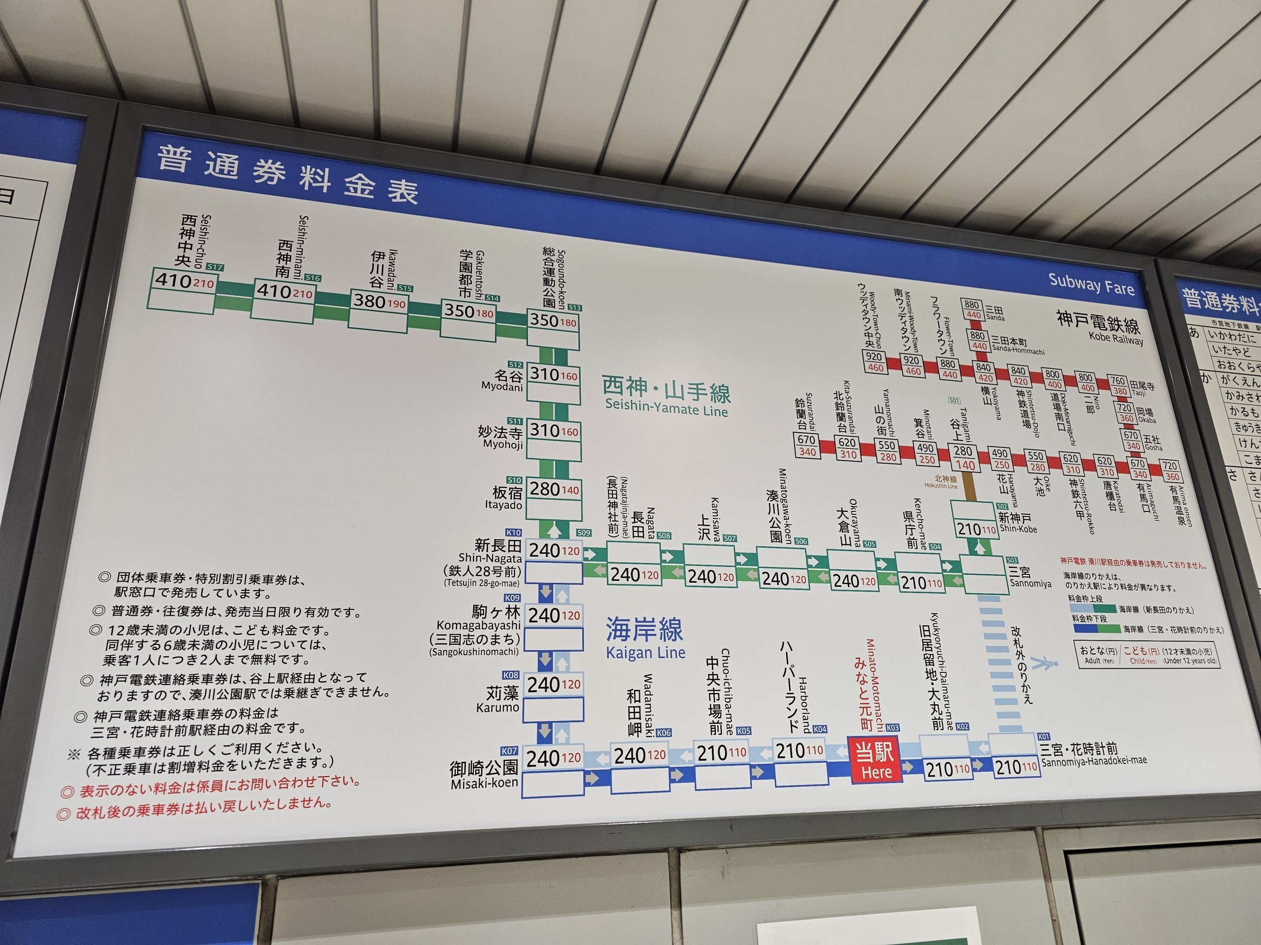 Pengecualian untuk daerah pusat kota kecil di sekitar stasiun Sannomiya, di mana Anda hanya perlu membayar 120 yen untuk 1 kali perjalanan.