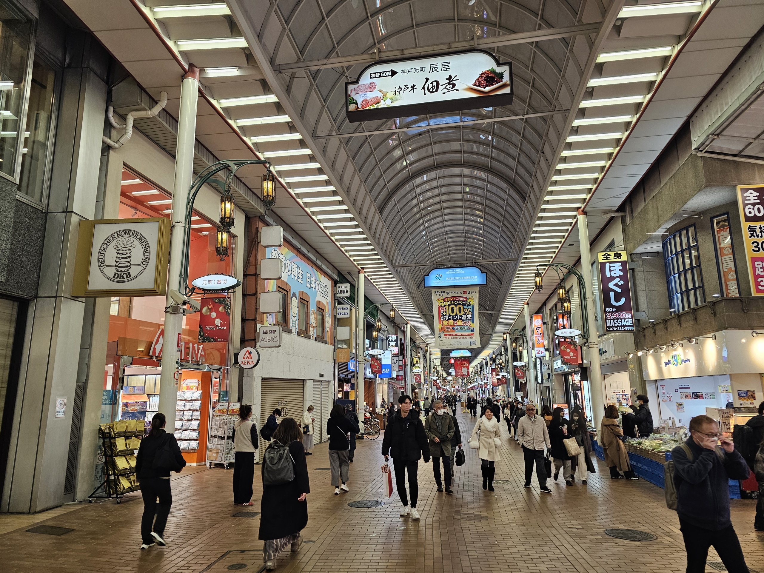 Anda akan menemukan berbagai butik kecil, toko obat, kafe, dan restoran, tetapi suasananya lebih tenang dibandingkan, misalnya, Dotonbori di Osaka atau Pasar Nishiki di Kyoto.