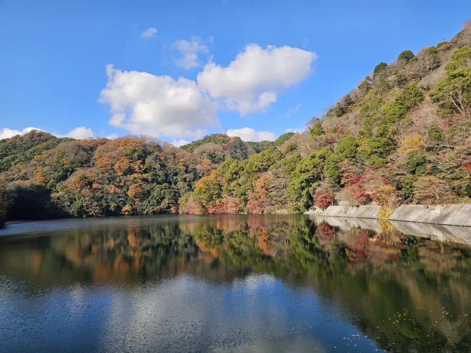 Jika Anda berjalan kaki dari kebun raya, Anda dapat memperpanjang perjalanan Anda sedikit melewati bendungan yang cantik.