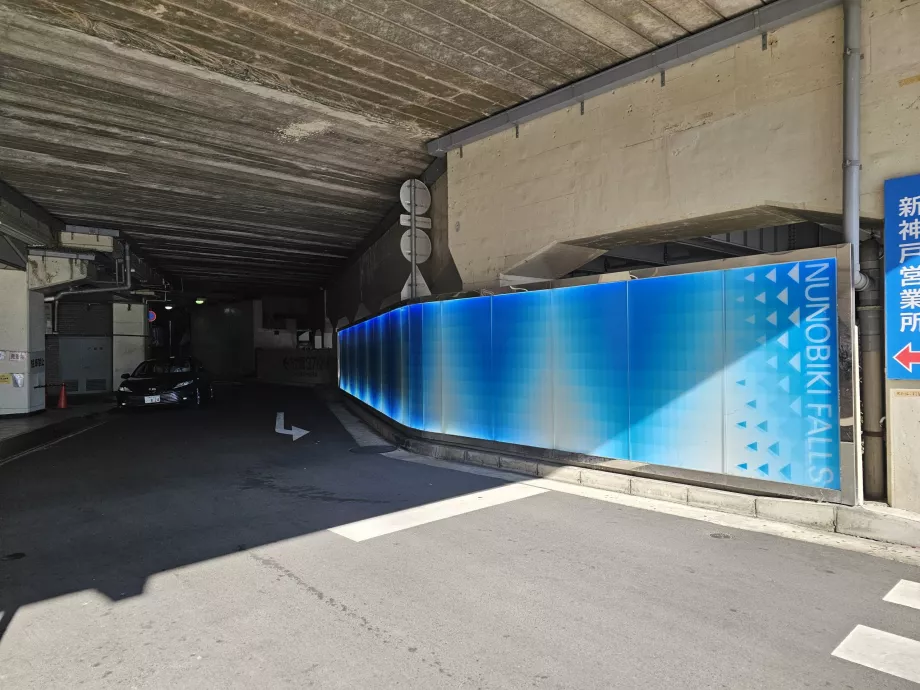 Pertama-tama Anda harus melewati jalan bawah tanah di bawah stasiun, yang ditandai dengan warna biru dan bertuliskan "Air Terjun Nunabiki".