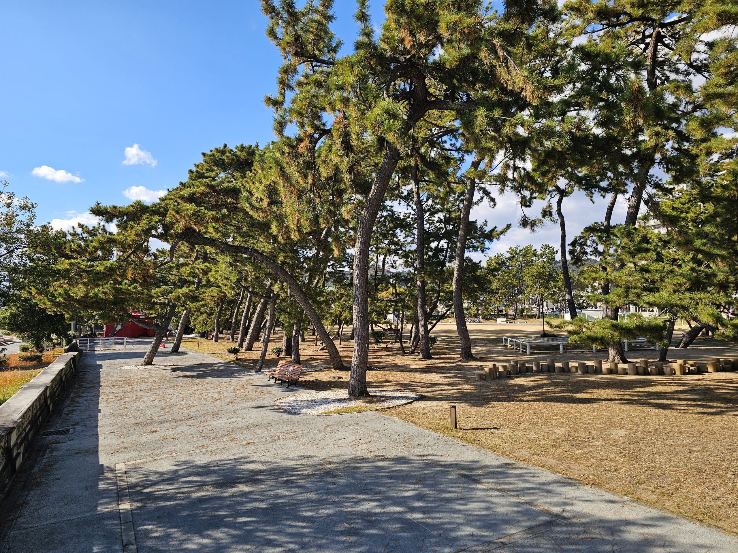 Di sisi lain, ada banyak ruang, pemandangan garis pantai yang indah dan, jika jarak pandang bagus, Jembatan Akashi Kaikyo.