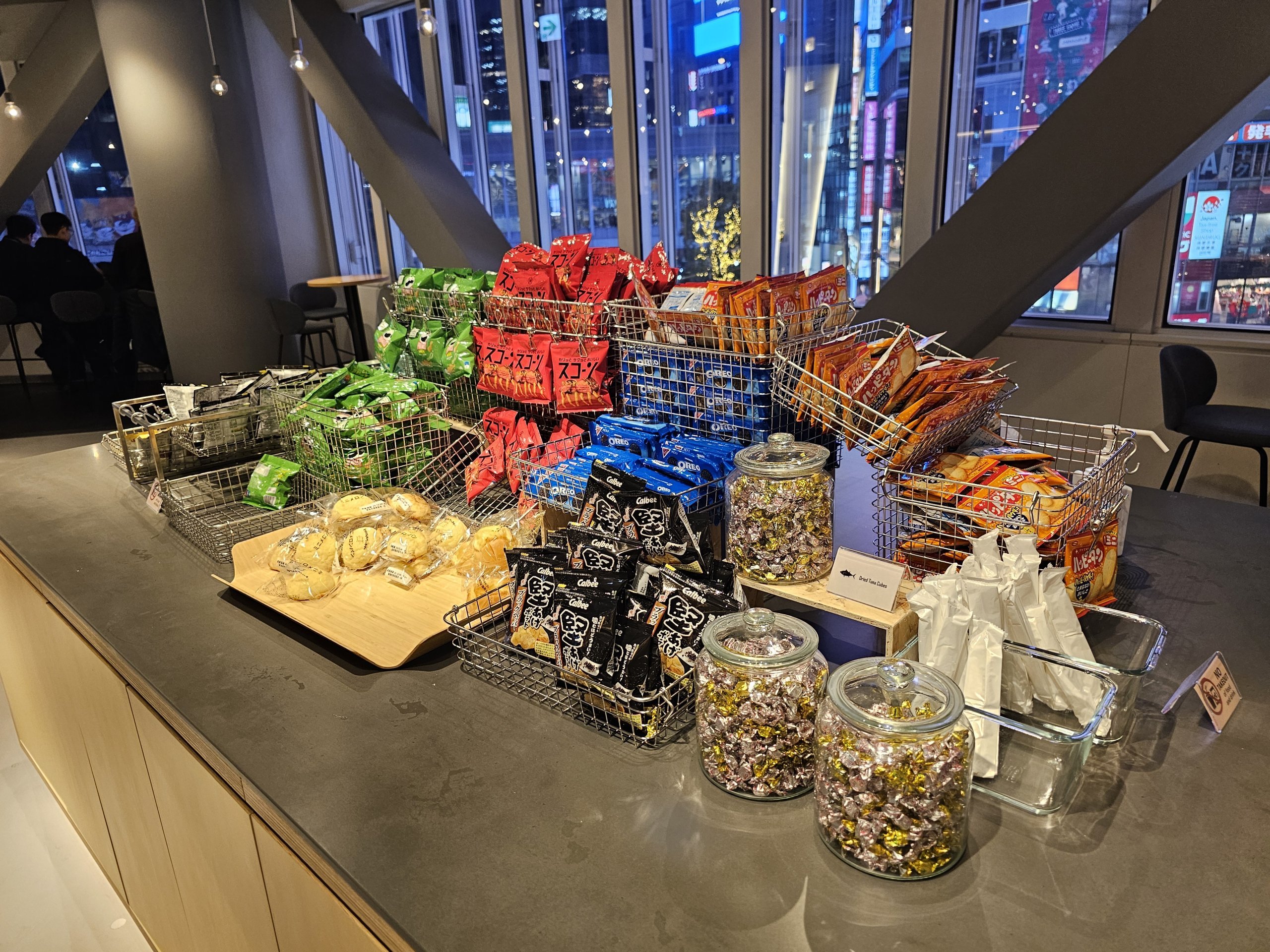 Tempat ini lebih mirip ruang tunggu bandara. Harga tiket masuk sudah termasuk makanan ringan seperti minuman dingin, kopi dari mesin penjual otomatis, atau makanan kecil.