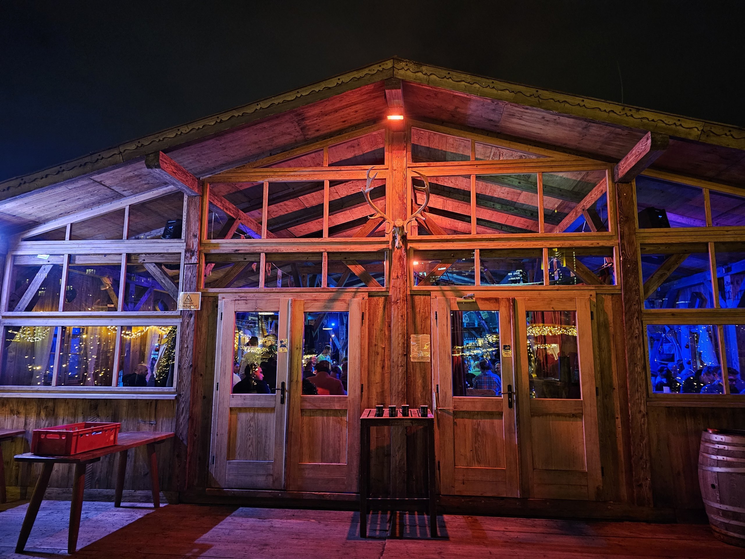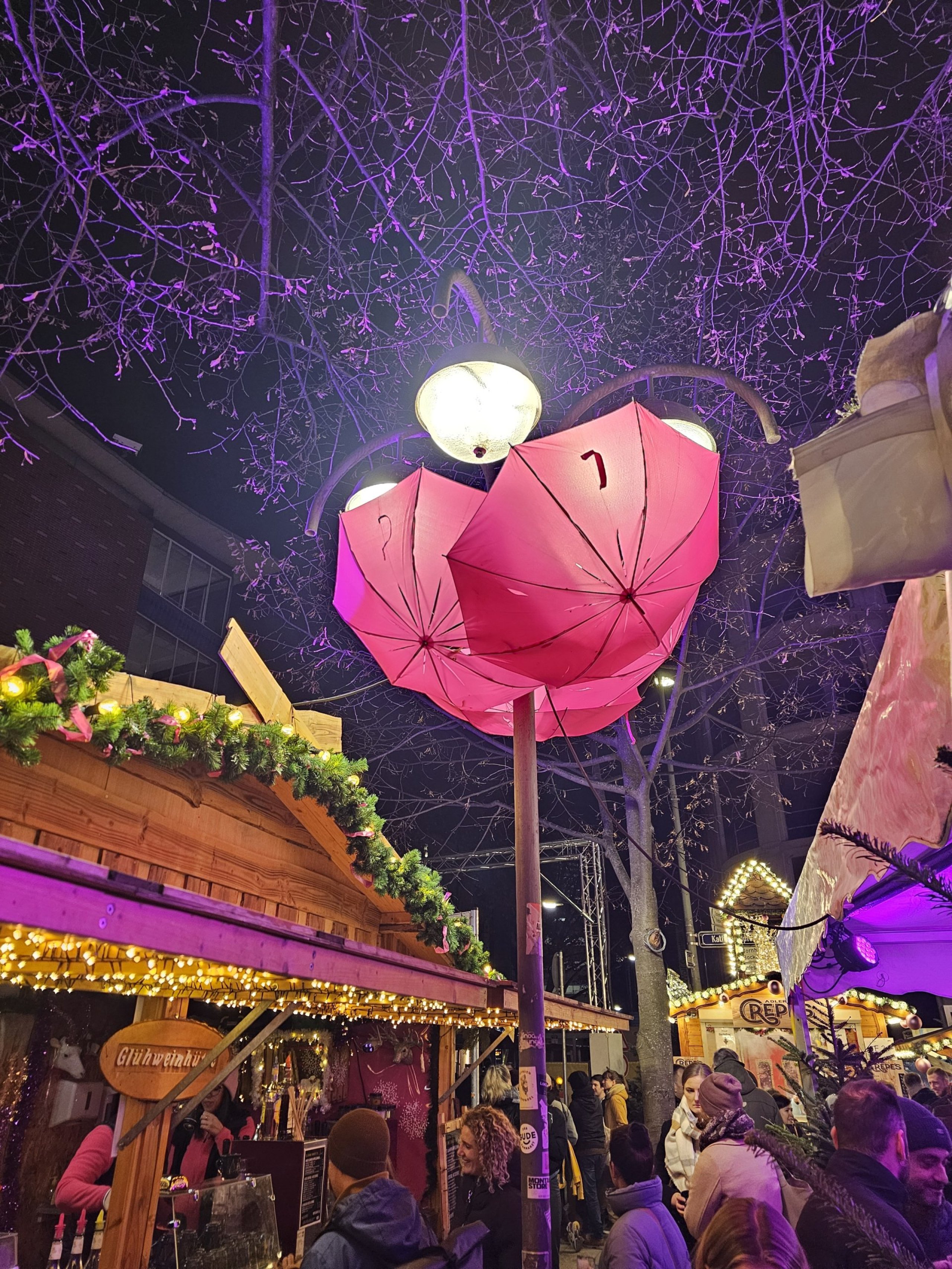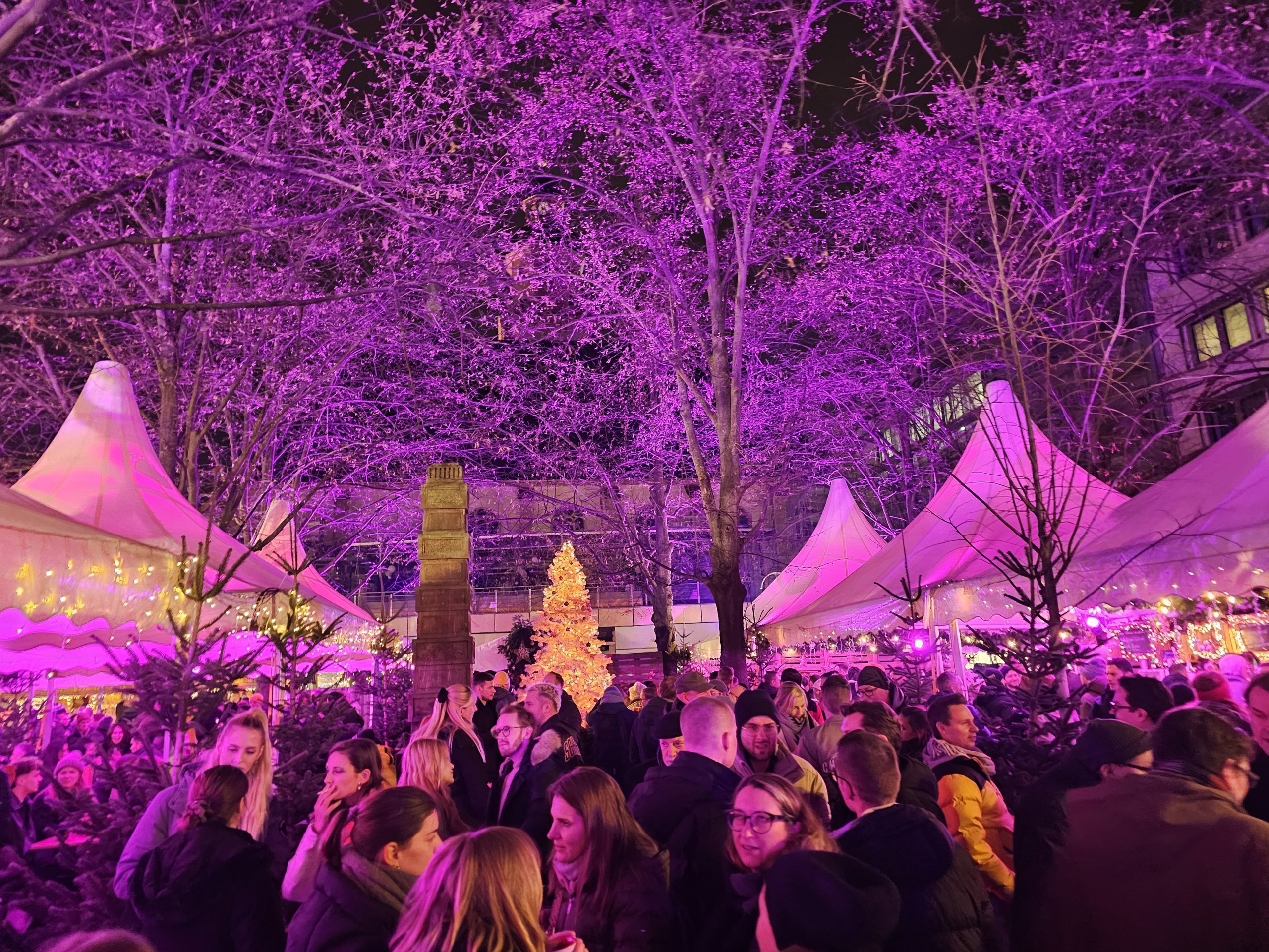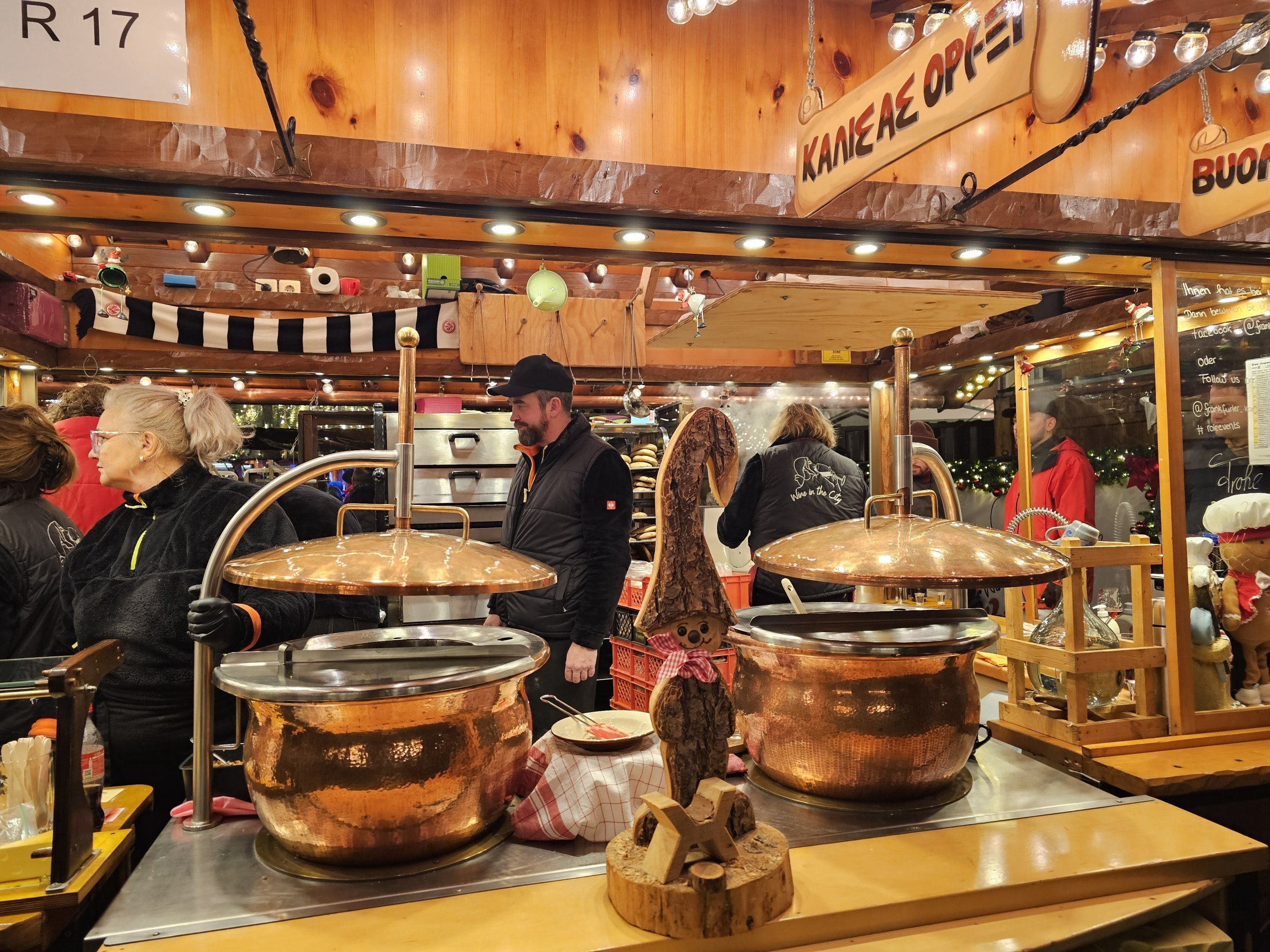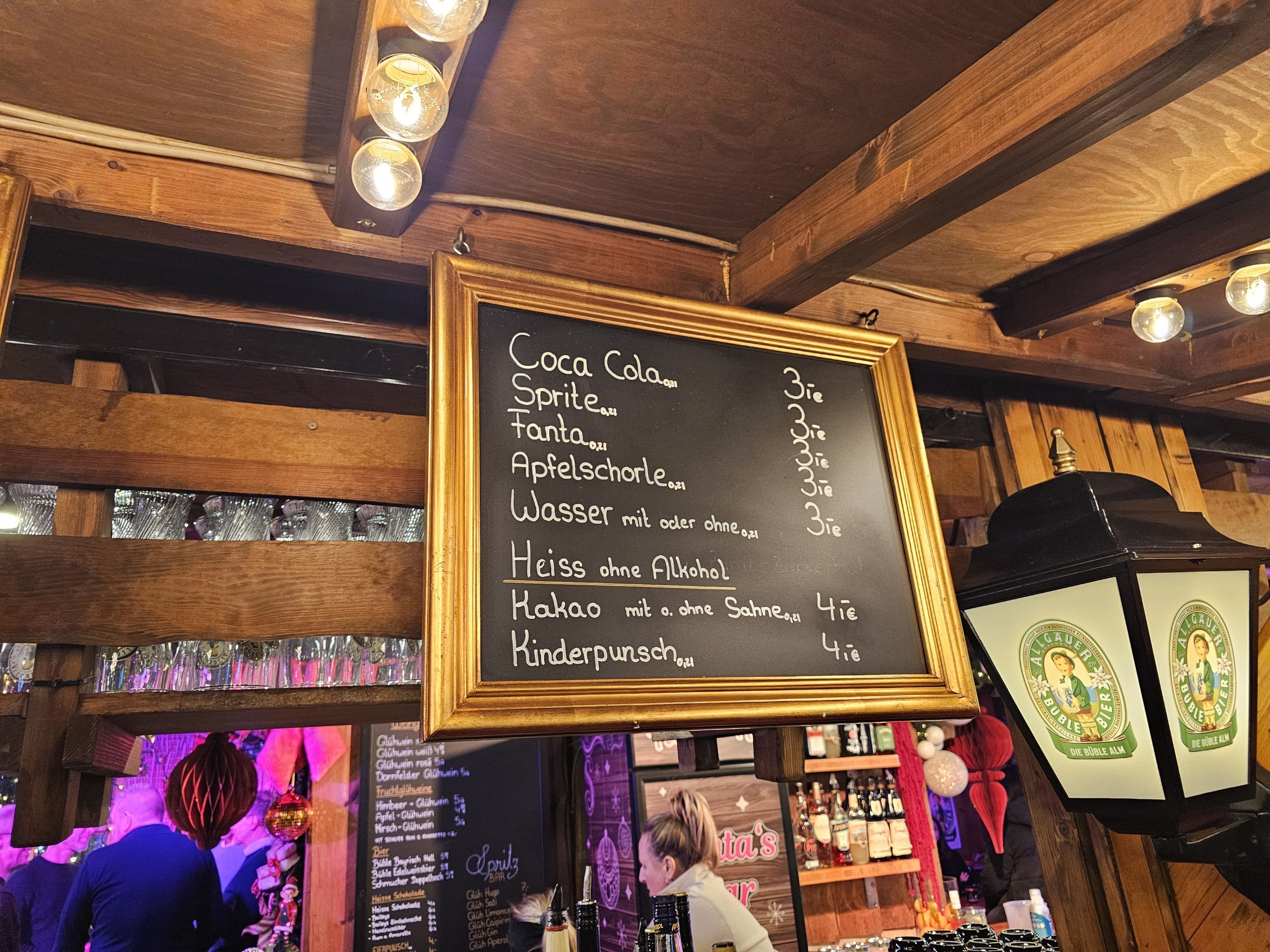 - ✅ Sebagian besar suasana Natal dengan pohon dan sejumlah besar kios minuman anggur