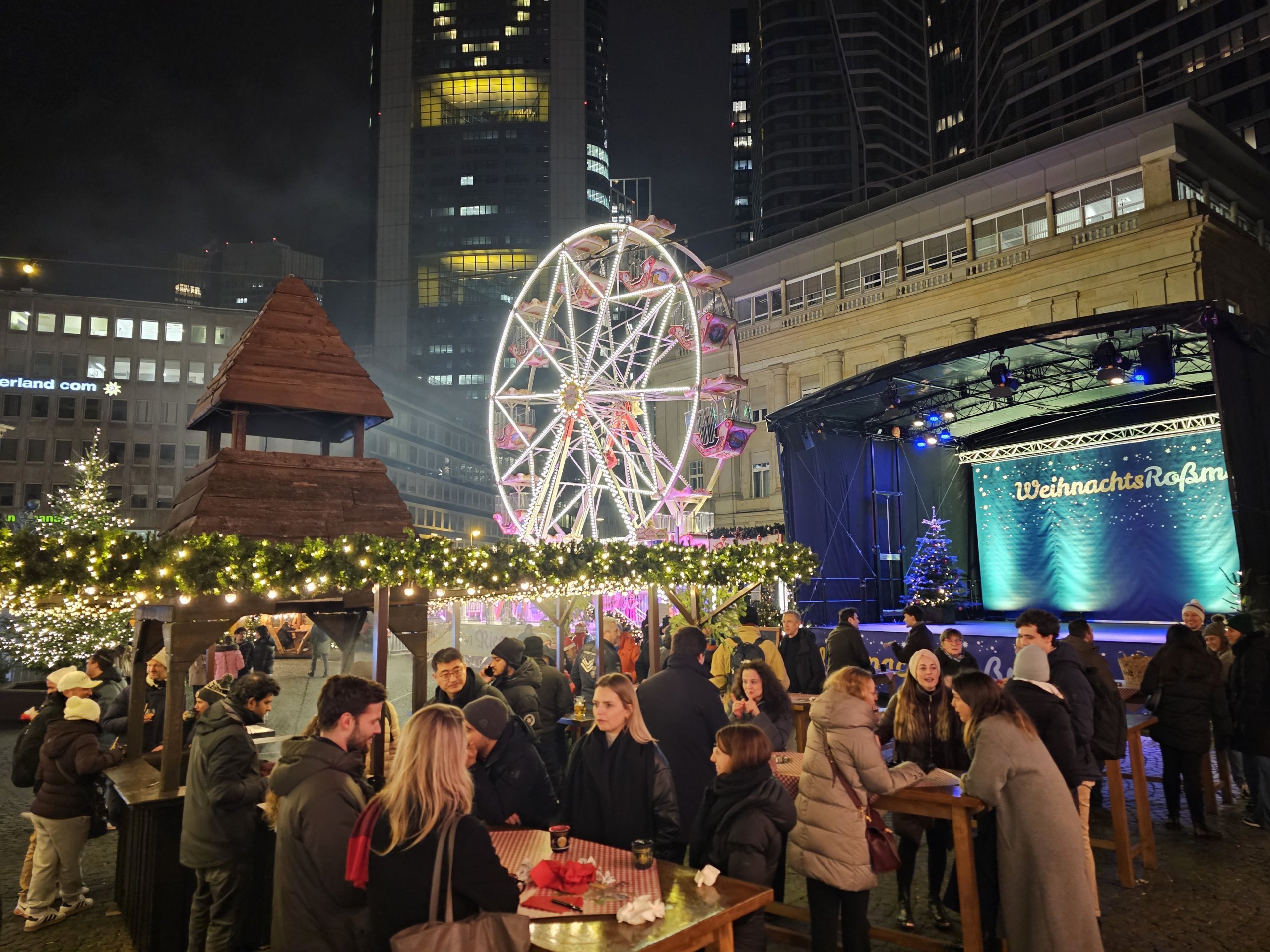 Anda juga akan menemukan komidi putar untuk anak-anak dan pohon Natal terbesar di Frankfurt.