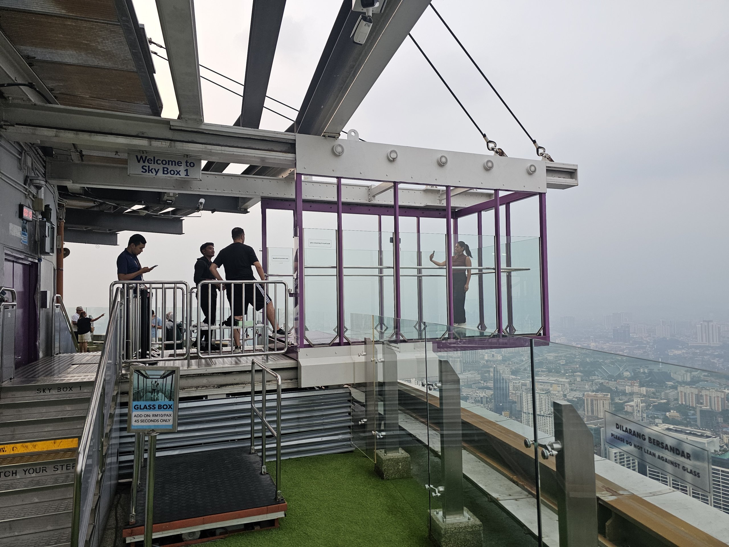 - Ini termasuk apa yang disebut Sky Box atau juga Glass Box, sebuah struktur yang menjorok ke tepi teras tempat Anda mengambil foto yang sangat unik, Anda membayar biaya 10 myr untuk 45 detik.