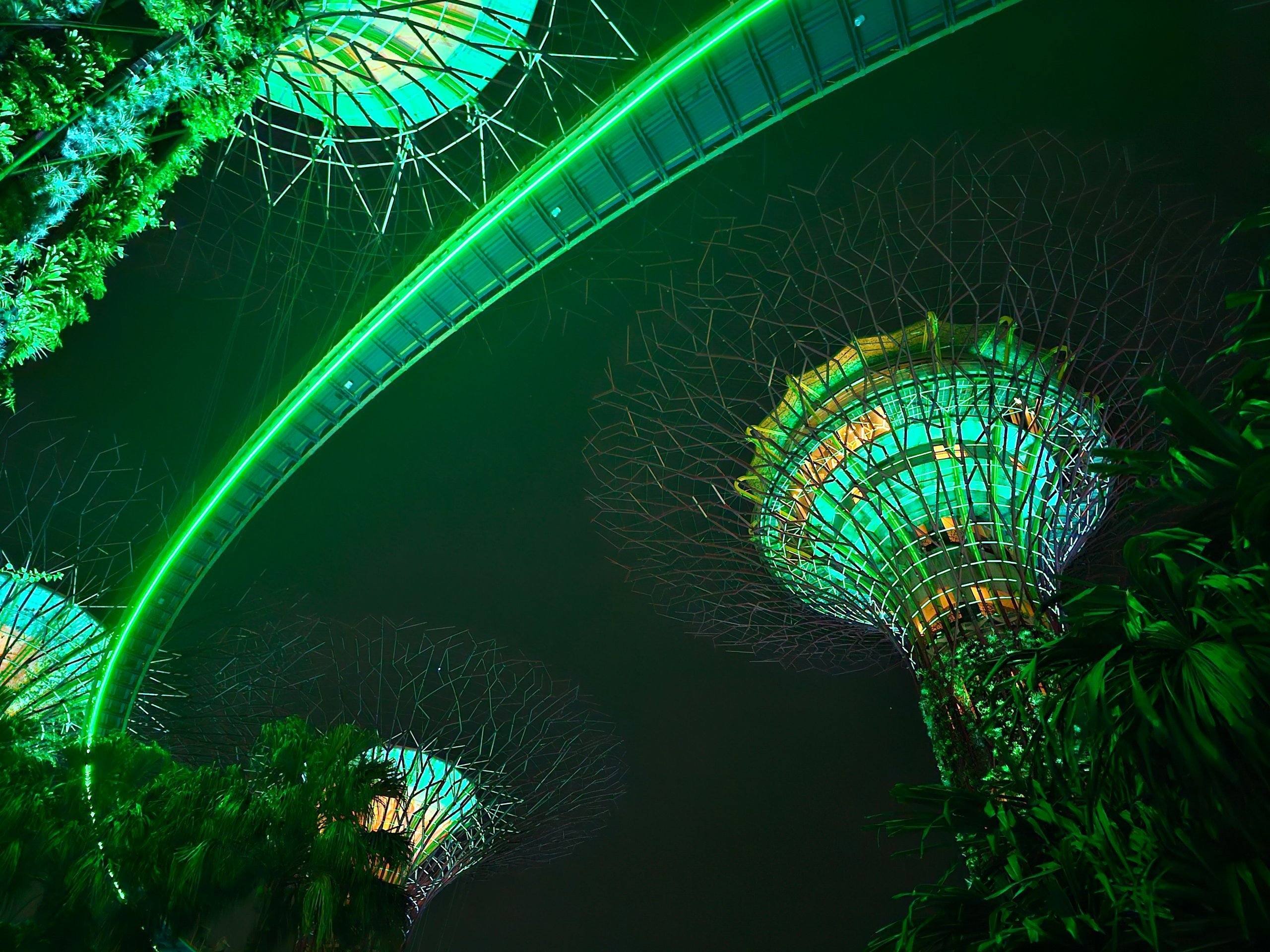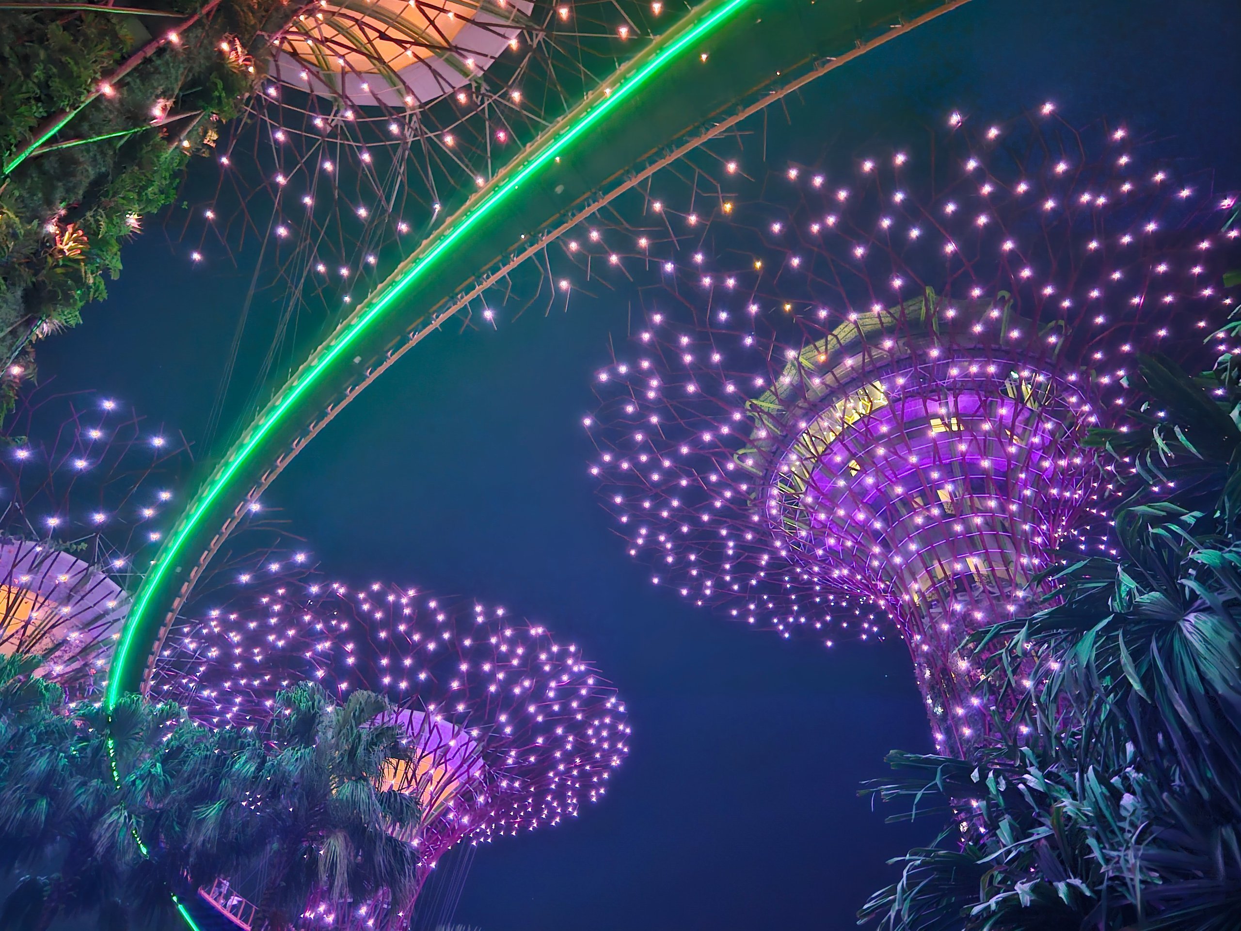 - Pertunjukan cahaya di antara "pohon-pohon super"