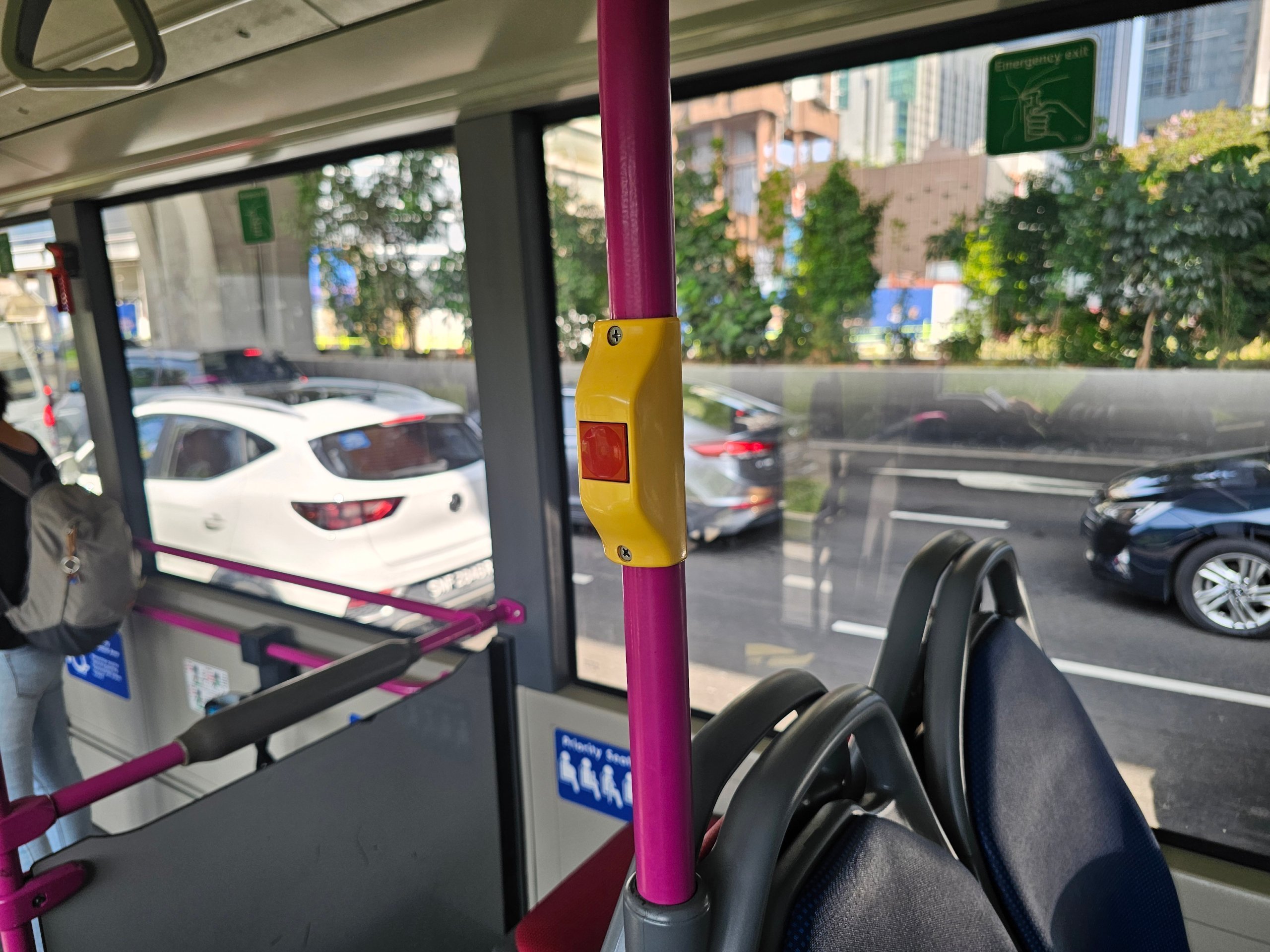 Jika Anda ingin turun, Anda harus menekan tombol berhenti. Jika tidak, bus dapat melewati halte tersebut.
