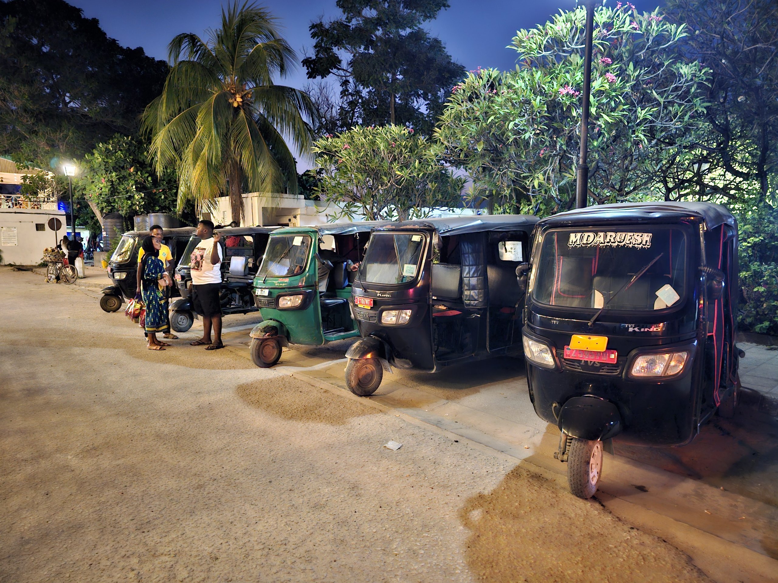 Di dalam Stone Town saya lebih banyak bergerak dengan berjalan kaki, tetapi saya juga mencoba bus "dala-dala" atau tuk tuk, yang di Tanzania disebut "bajaji".