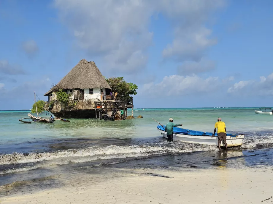 Restoran The Rock adalah atraksi ikonik tidak hanya untuk Zanzibar tapi juga untuk seluruh Tanzania. Rumah kecil yang terlihat seperti negeri dongeng ini berdiri di atas batu di tengah lautan sekitar 50 meter dari pantai dan sekilas Anda tidak akan tahu bahwa di dalamnya terdapat salah satu restoran termewah di Zanzibar. [btn "10 hotel terbaik di Zanzibar" https://www.booking.com/region/tz/zanzibar.en.html?aid=2405302;label=p-zanzibar-rock] …
