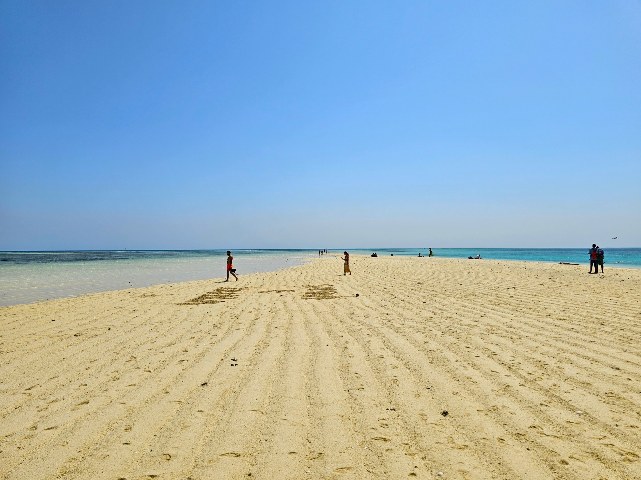 Bahkan saat air pasang, sebagian kecil tetap berada di atas air, tetapi dibandingkan saat air surut, Gumuk Pasir Nakupenda sekitar 5 kali lebih kecil.