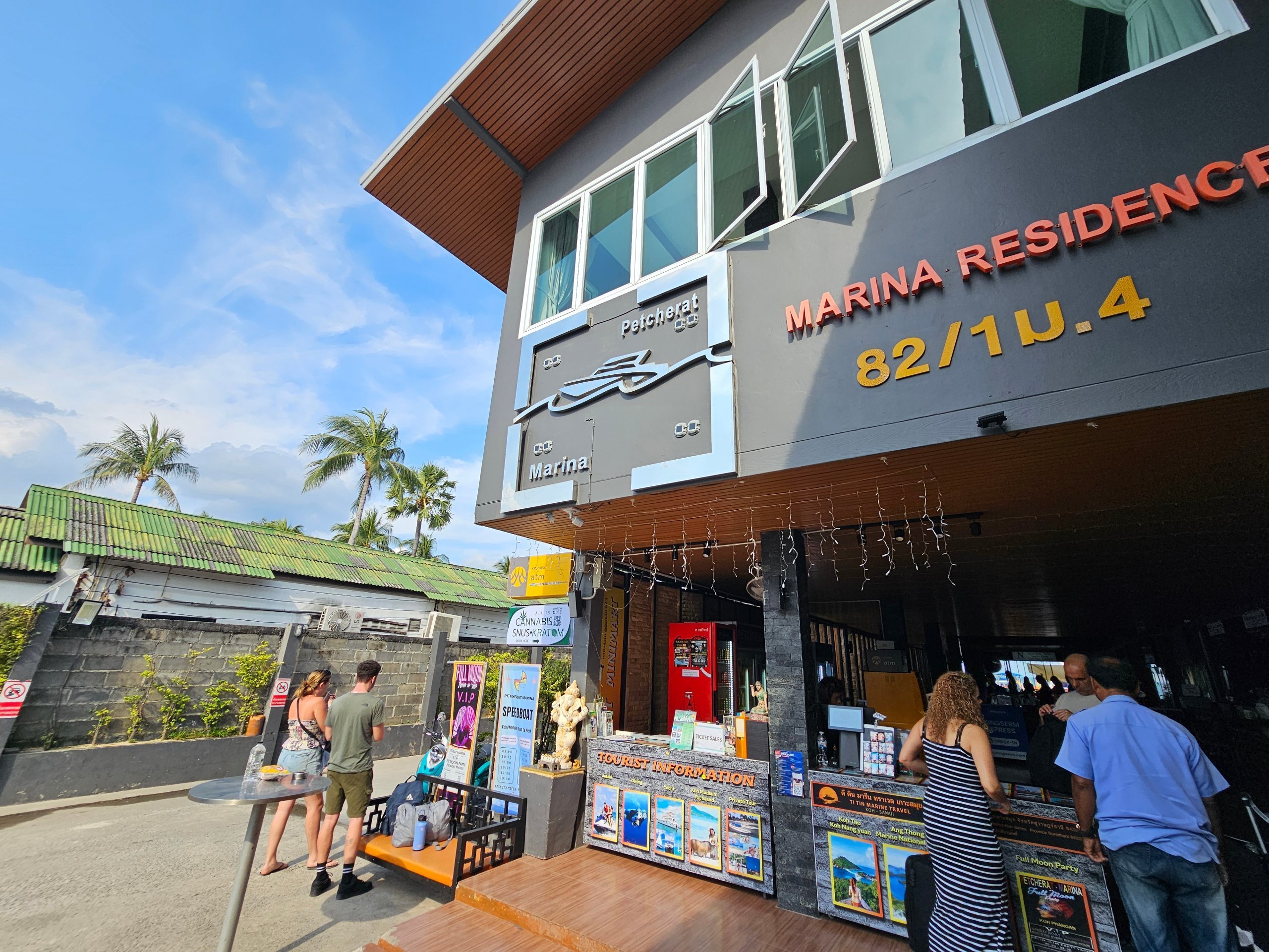 - DermagaBangrak / Petcherat Marina → paling dekat dengan bandara, di utara pulau, sebagian besar koneksi (beberapa kali per jam)