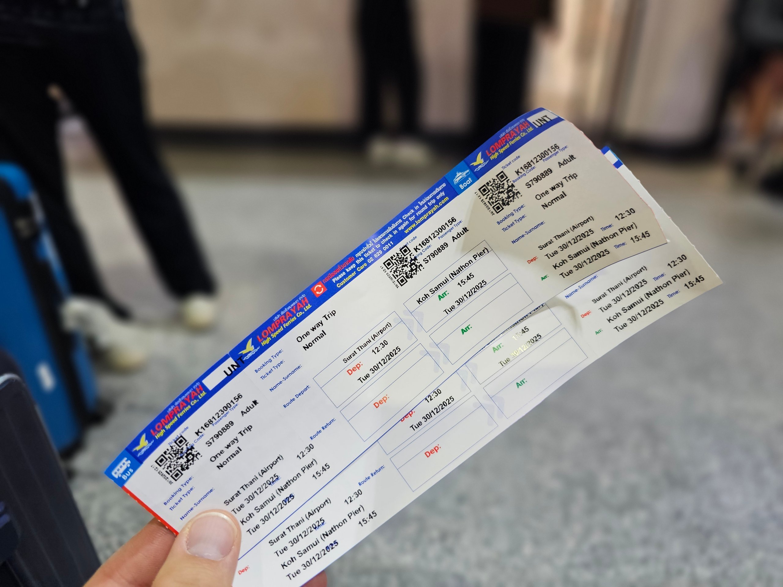 Tiket sekali jalan dari Chumphon ke Koh Samui seharga 1.200 THB.