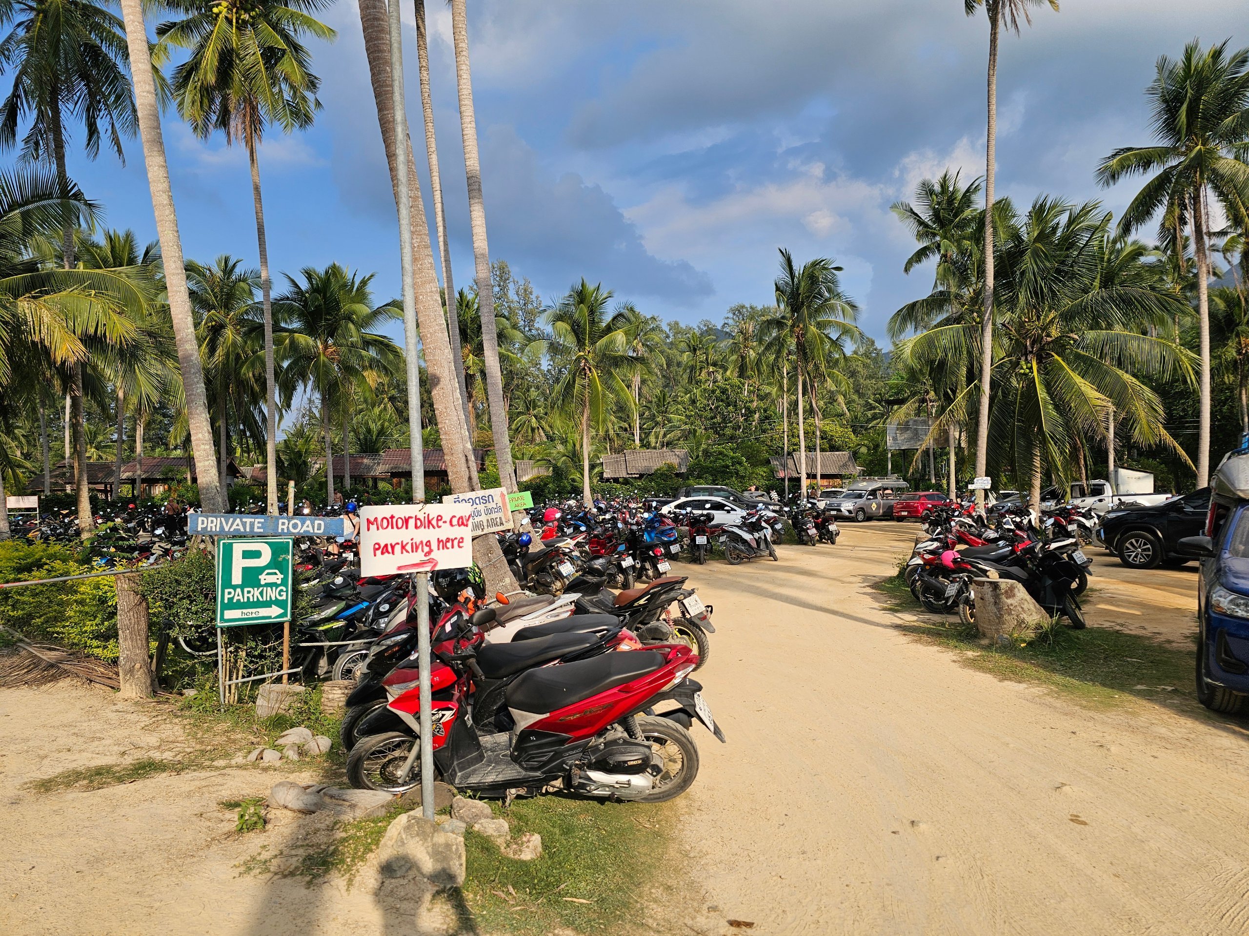 Parkir mudah - untuk skuter tepat di tepi pantai. Untuk mobil hanya di sepanjang jalan utama (ada banyak tempat). Dalam kedua kasus tersebut, parkir gratis.