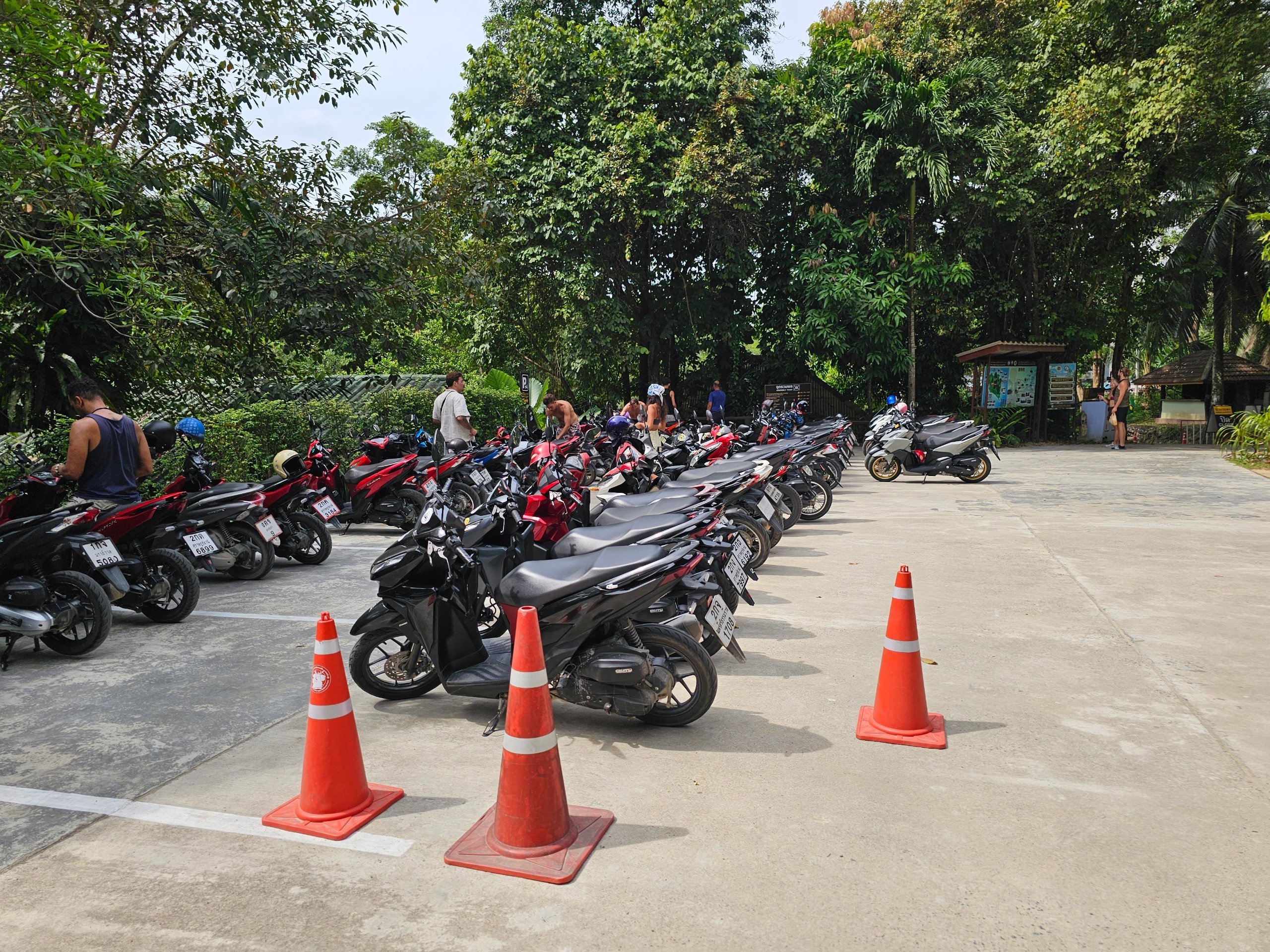 Di pintu masuk terdapat tempat parkir yang luas untuk skuter (20 thb) dan mobil (30 thb). Anda hanya dapat membayar dengan uang tunai.