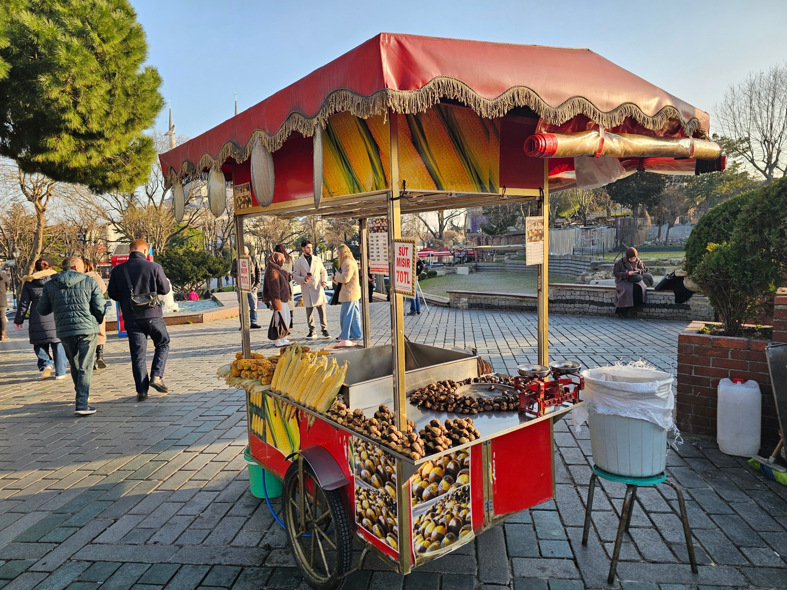 Budaya khas Istanbul adalah kedai-kedai yang menjajakan jagung rebus dan kastanye panggang di mana-mana.