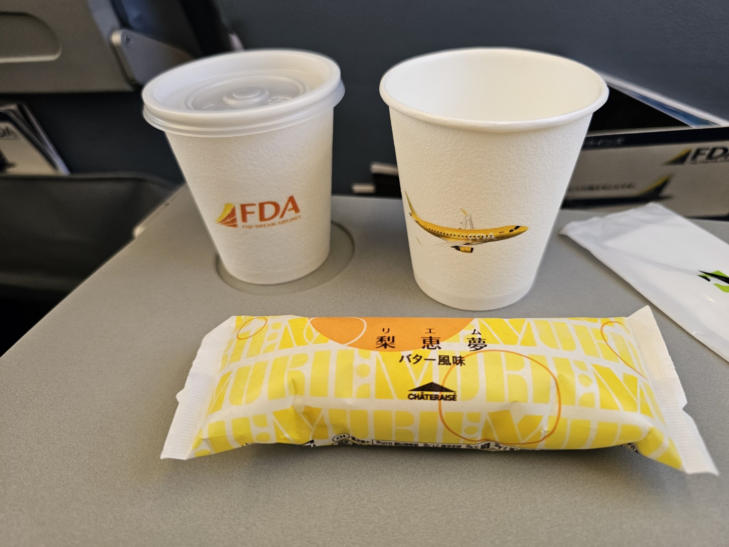 Makanan standar tidak dapat ditambahkan, tetapi waktu penerbangan maksimum di Fuji Dream Airlines adalah sekitar 2 jam, jadi Anda tidak memerlukan makanan.