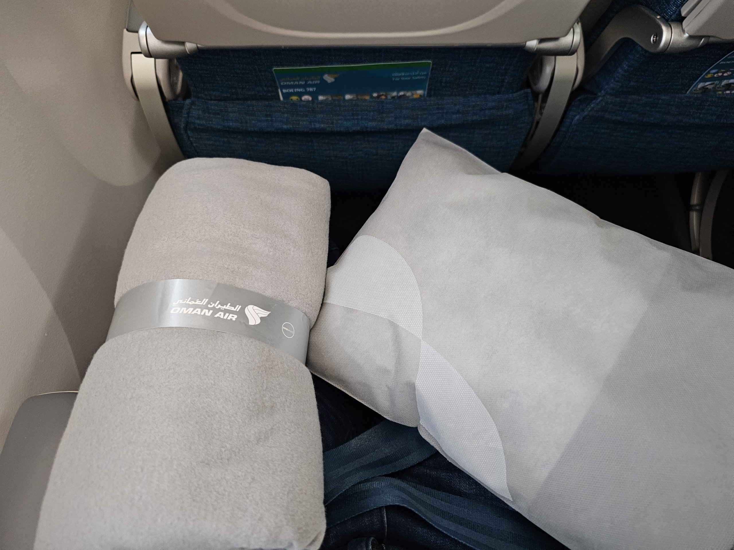 Semua penumpang kelas ekonomi pada penerbangan malam hari mendapatkan selimut, bantal, dan headphone gratis untuk sistem hiburan.