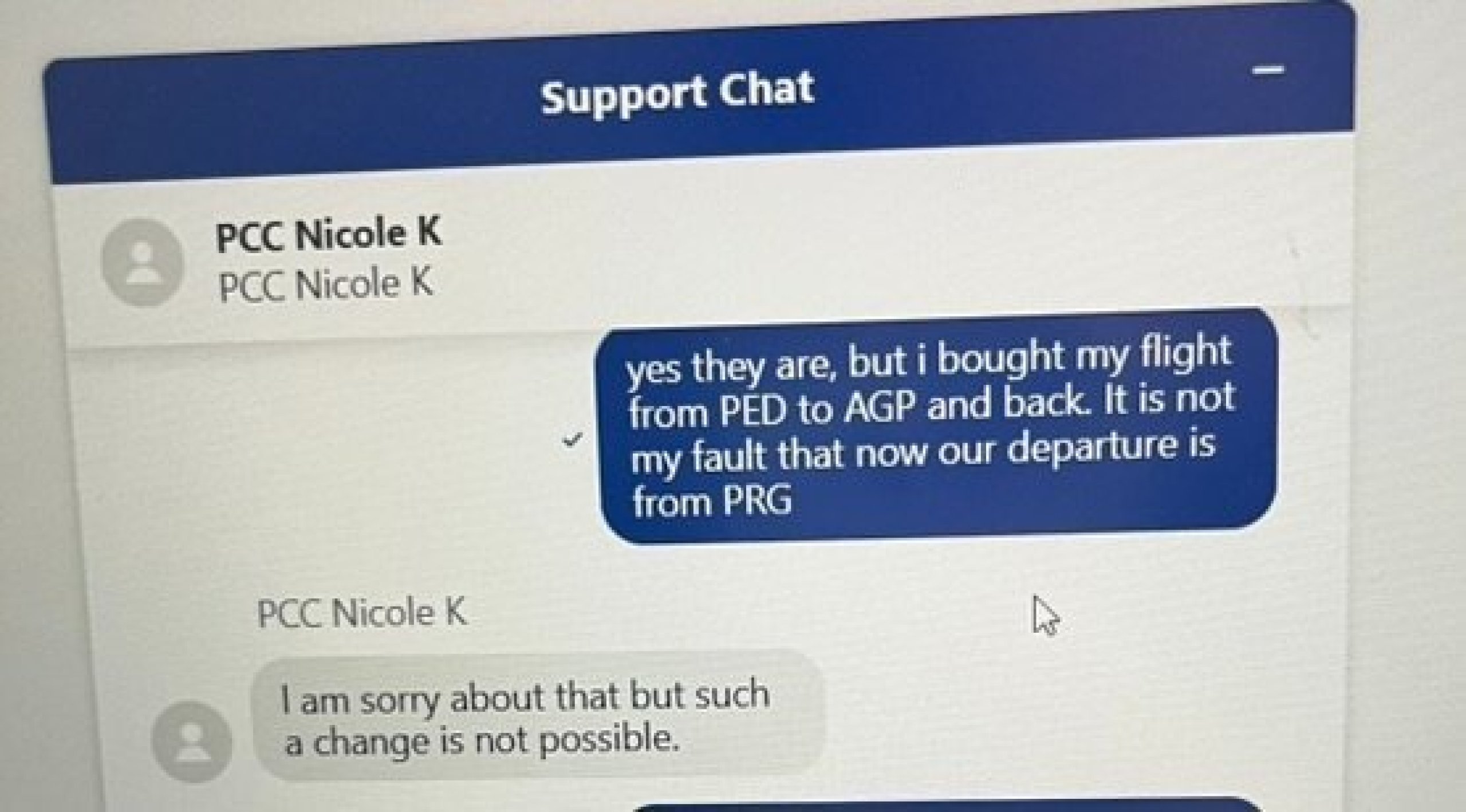 Saya mengikuti saran untuk mencoba menghubungi bagian dukungan. Jangan ragu untuk mengirim pesan ke obrolan dan minta dihubungkan ke agen. Kecuali jika Anda menginginkan perubahan yang akan membuat Anda kehilangan celana, ada kemungkinan mereka akan mengakomodasi Anda jika Anda memiliki penerbangan dalam satu pemesanan. Mintalah mereka untuk mengubahnya ke penerbangan tertentu ke Praha. Saya berhasil melakukan hal seperti ini di bawah covida - tentu saja mereka membatalkan penerbangan "investasi" 10 euro, jadi saya dengan kejam mengubahnya ke Rhodes selama liburan bulan Juli melalui agen 🤣.