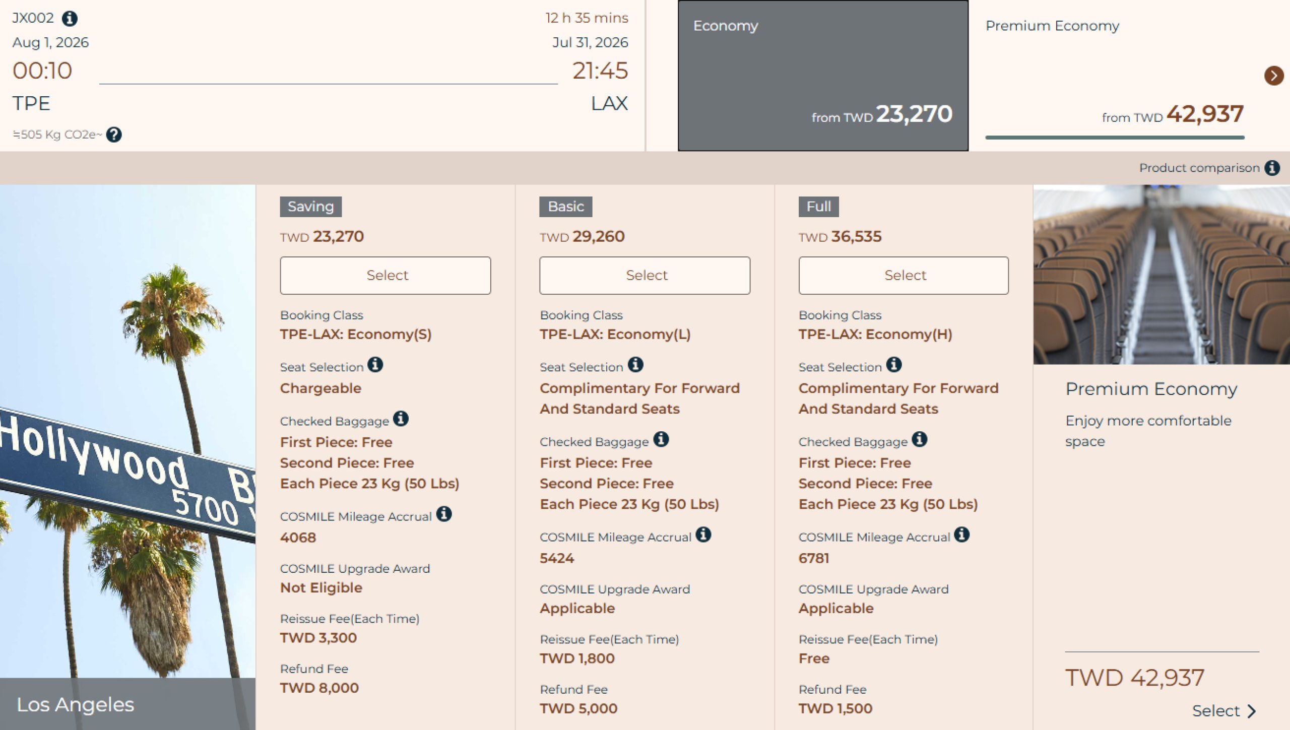 STARLUX menawarkan kelas ekonomi, ekonomi premium, bisnis, dan kelas satu di pesawatnya.