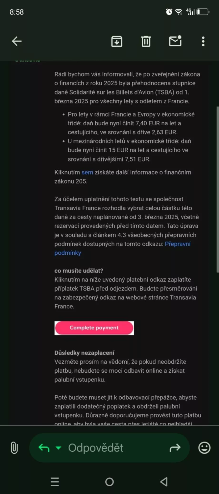 Hai, saya membeli tiket ke Paris melalui pemesanan. Saya terbang pada hari Sabtu, tetapi saya mendapat email dari Transavia bahwa saya harus membayar pajak,