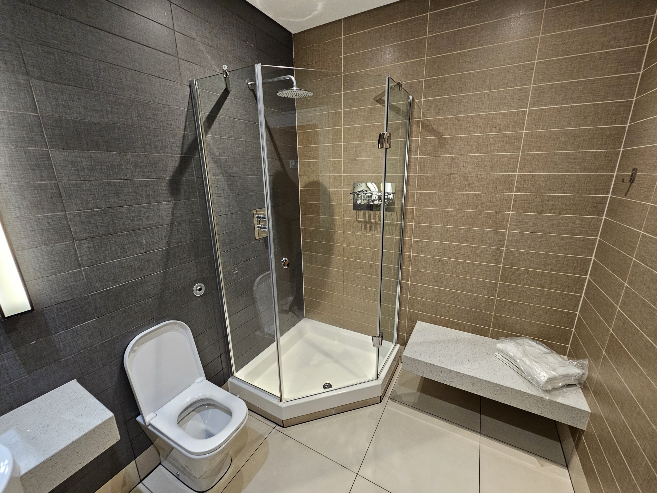 Anda akan menemukan kamar mandi tepat di pintu masuk lounge - kamar mandinya sangat luas dan bersih, dan Anda akan mendapatkan dua handuk secara gratis.