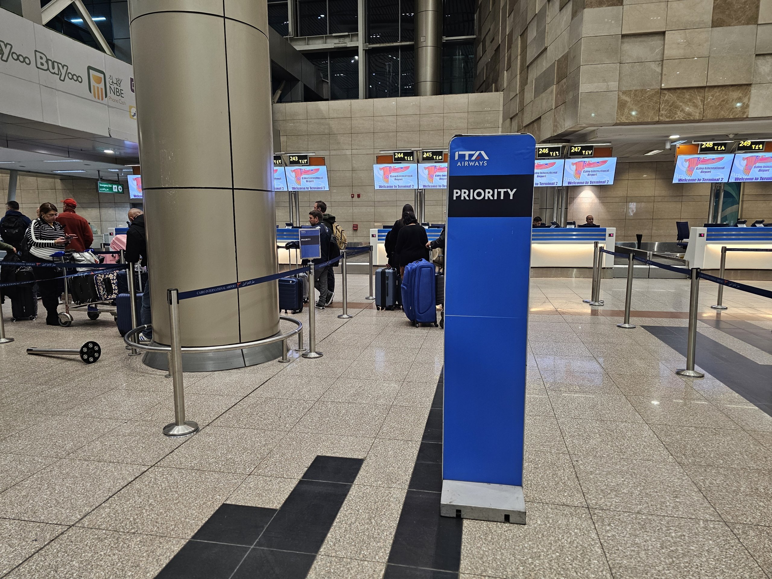 Saya melakukan check-in di Bandara Kairo, di mana ITA Airways memiliki 5 konter check-in khusus di Terminal 2.