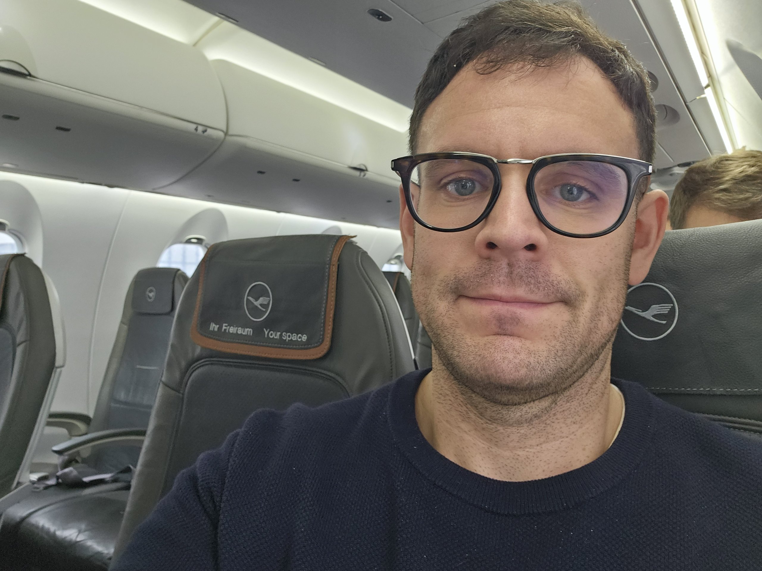 Jalur Munich-Frankfurt terutama digunakan oleh para pelancong bisnis yang sangat sering terbang, jadi saya tidak mengharapkan adanya pemandangan yang kacau saat naik ke pesawat, dan itulah yang akan terjadi.